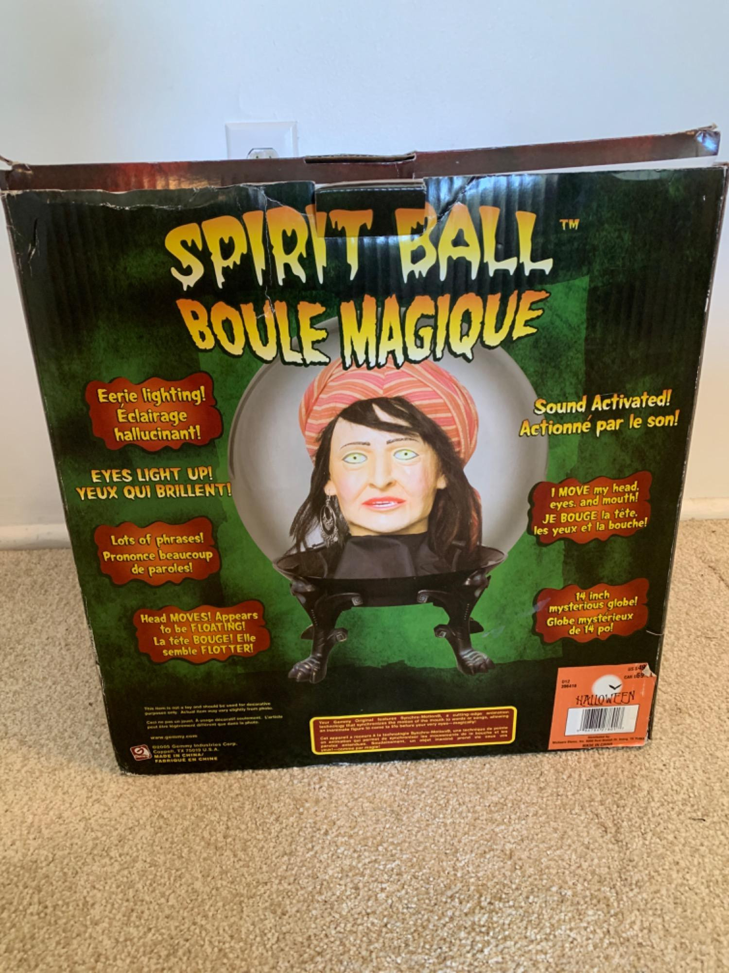 Electric Halloween spirit ball. Sound activated. Moves and makes noises.