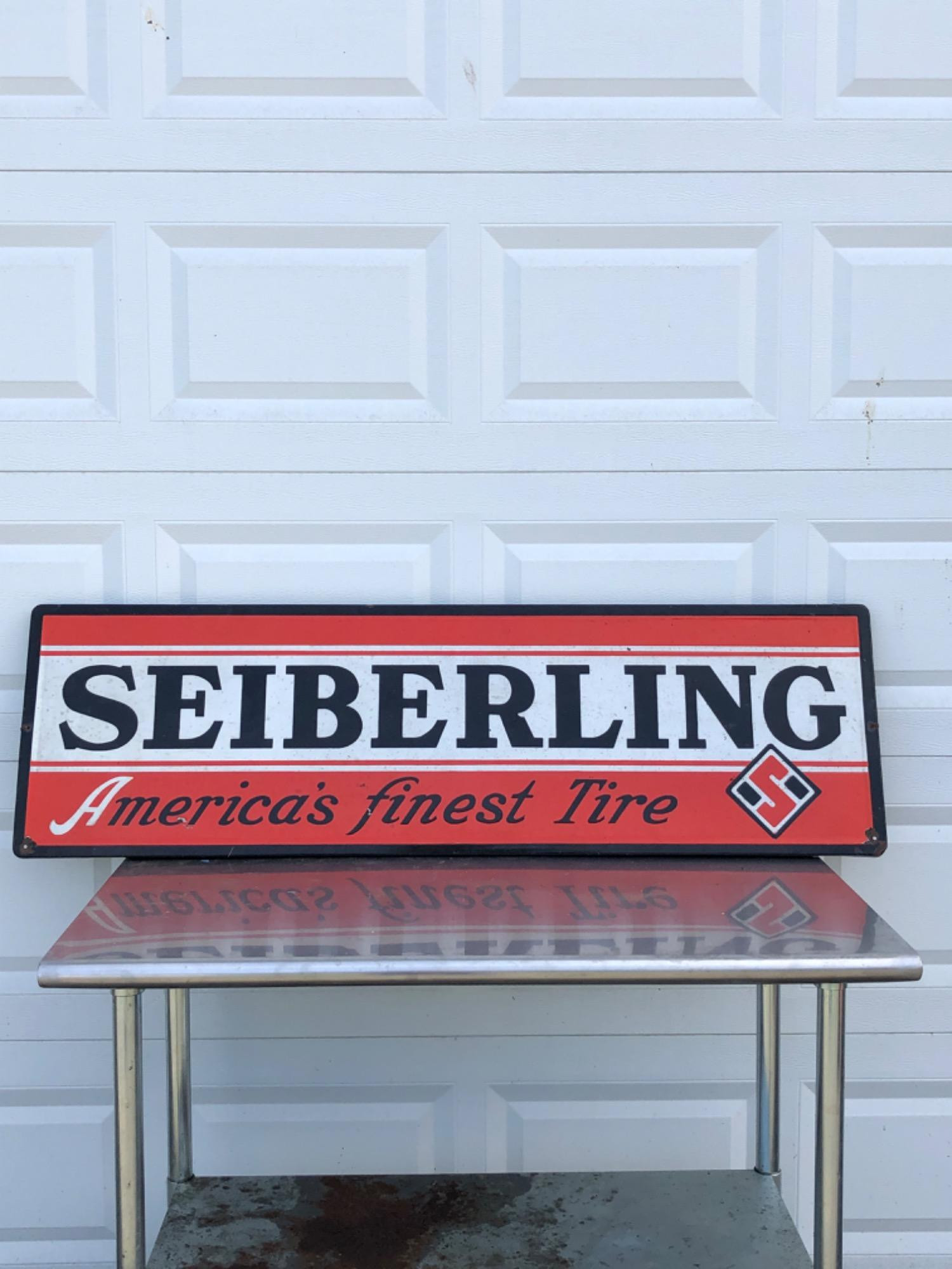 Metal Advertising Sign - Seiberling Americas Finest Tire Dimensions: 5 feet long x 18 inches high x 1 inch thick