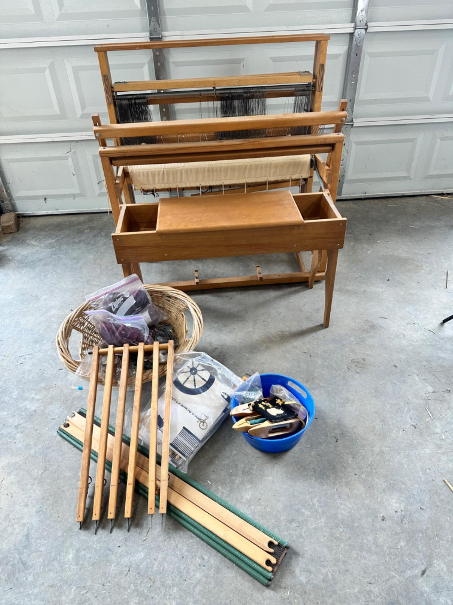 Leclerc Nilus Low Castle Floor Loom - 4 Harness. 36" width loom. Click here to read more about this Loom. (please note, this may not be the same exact model) This loom comes with all shown. Bidding on this lot is an agreement that: (1.) You