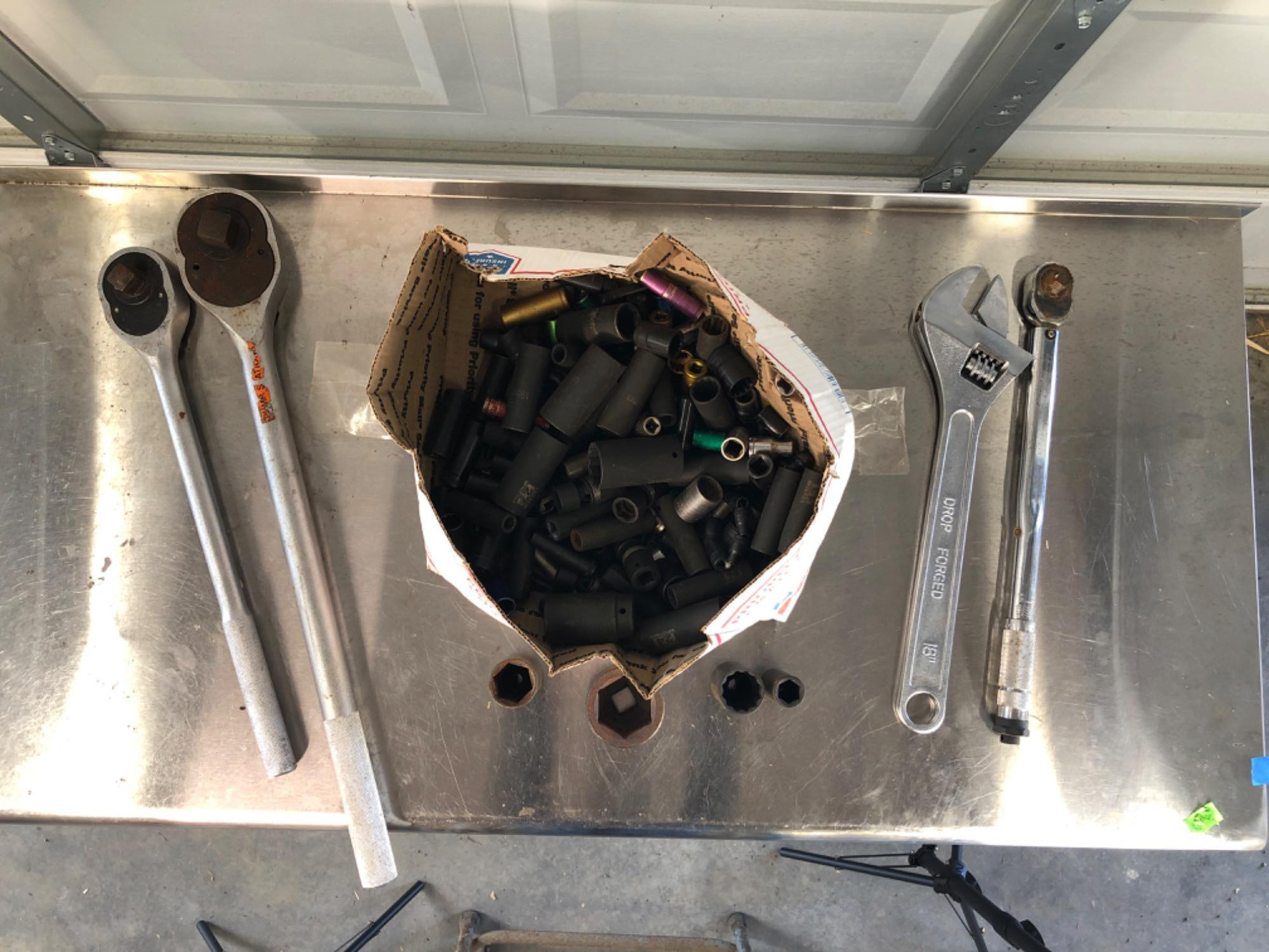 Large Rachets - Large Crescent Wrench - Box of Sockets Includes: 20 inch rachet - 26 inch rachet - 18 inch crescent wrench - Box full a various sizes of sockets