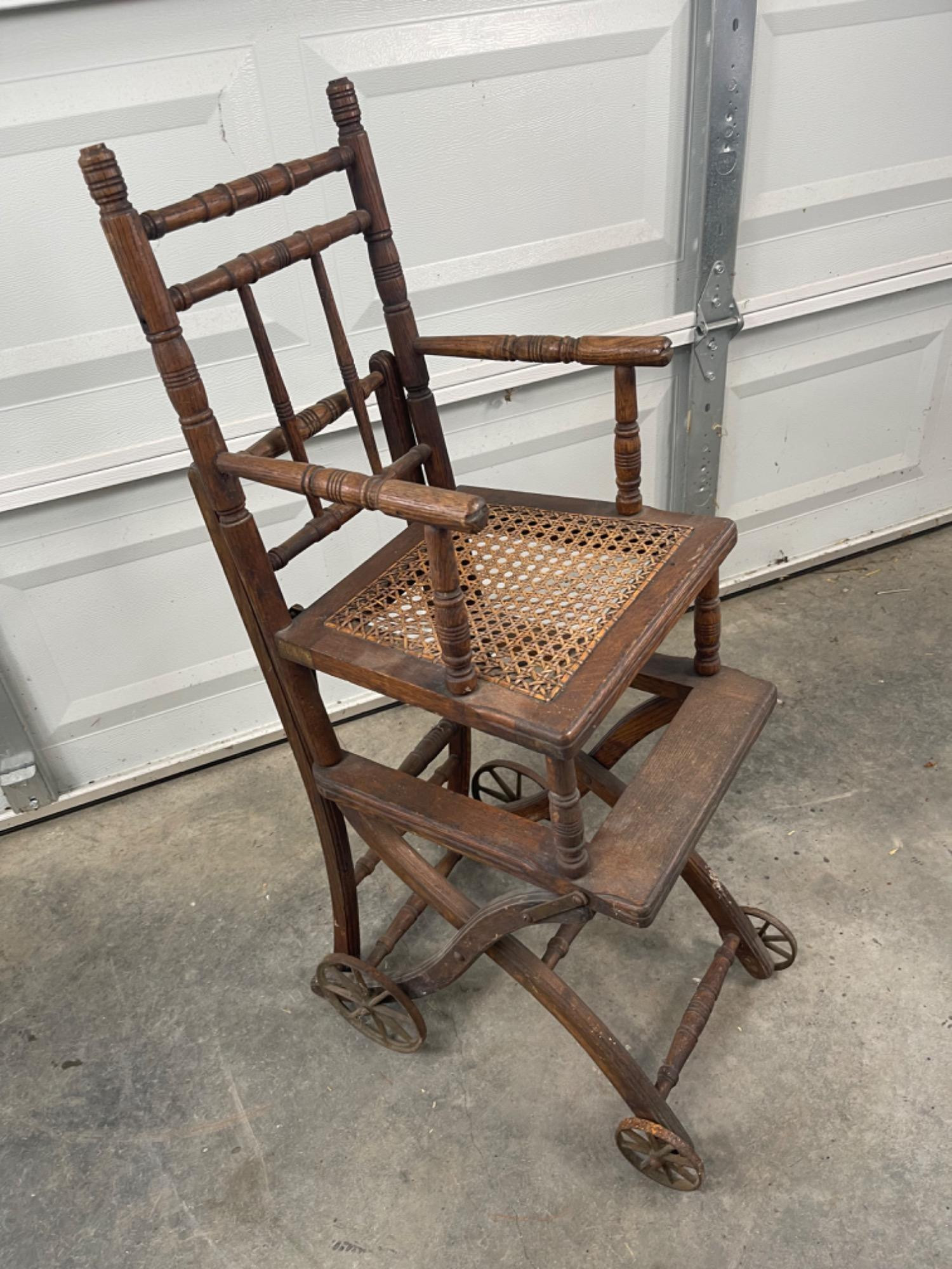 Lot # 51 - Antique Caned Convertible High Chair/Stroller-See Pictures