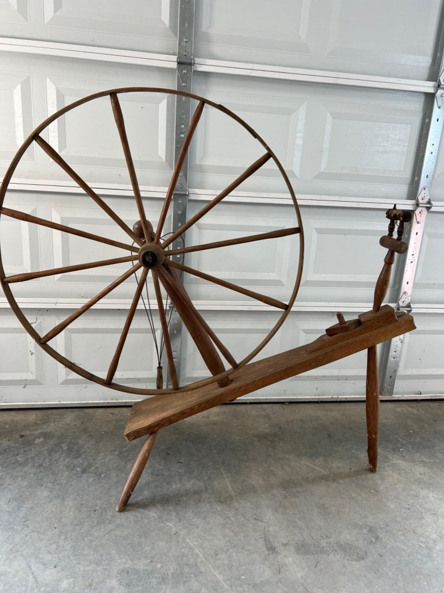 Antique Spinning Wheel and Yarn Winder Dimensions: 57 inches tall x 64 inches long x 25 inches wide