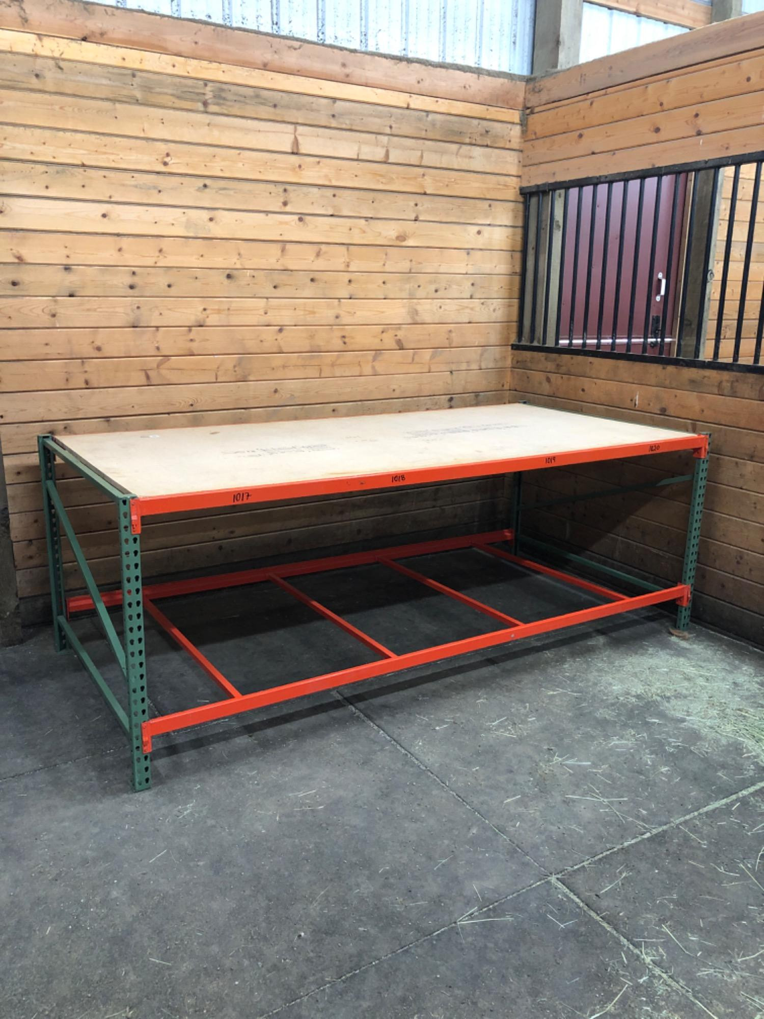 Industrial Metal Storage Shelving Dimensions: 100 inches long x 3 feet high x 4 feet deep Bidding on this lot is an agreement that: (1.) If you intend to disassemble this item for transport, that you will bring the necessary tools to do so and you have the manpower to disassemble and lift and place in your vehicle. If these
