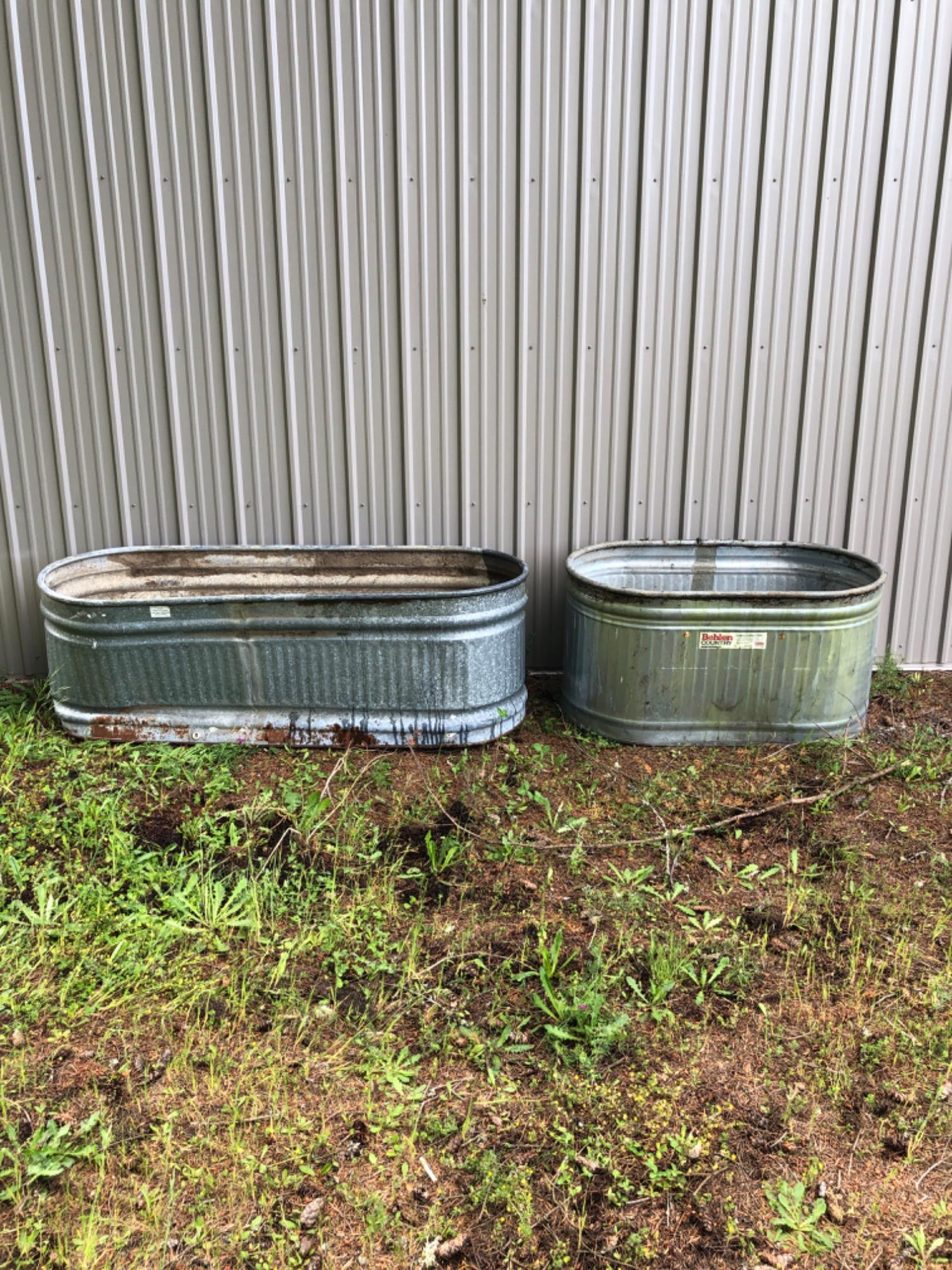 2 Galvanized Water Trough's Dimensions: 70.5 inches long x 24 inches high x 25 inches wide 46 inches long x 24 inches high x 24.5 inches wide