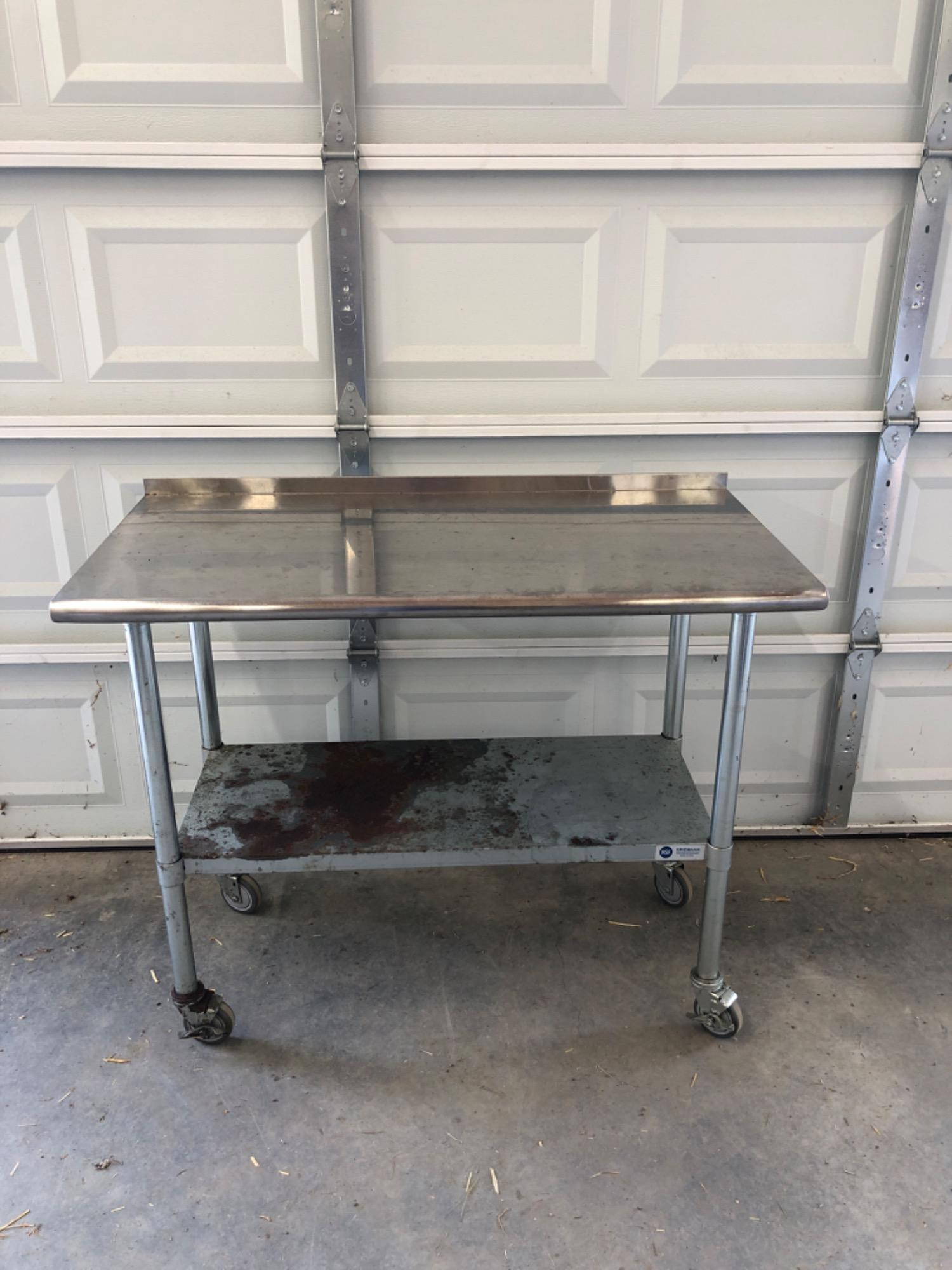 Rolling Metal Work Table Dimensions: 4 feet long x 38.5 inches high x 24 inches deep