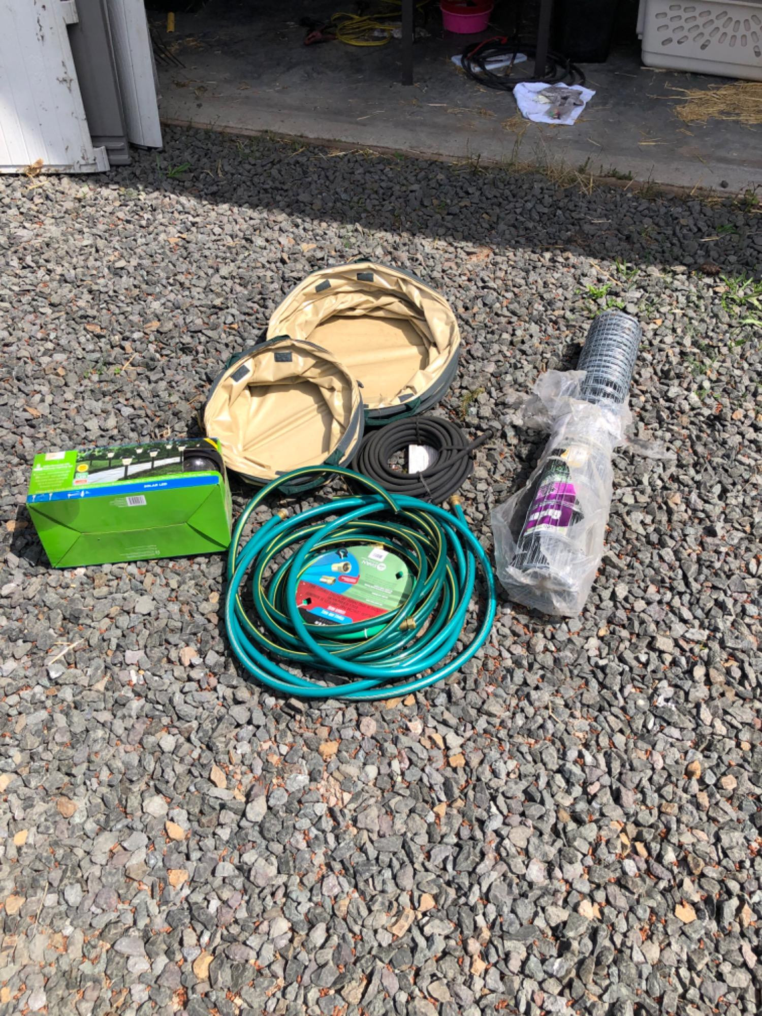 Garden Accessories Garden Hose 50 feet Soaker Hose - Brand New 8 Solar-Powered LED Pathway Lighting Set - New in Box Garden Fencing - 40 inches high x 50 feet 3 Collapsible Garden Totes