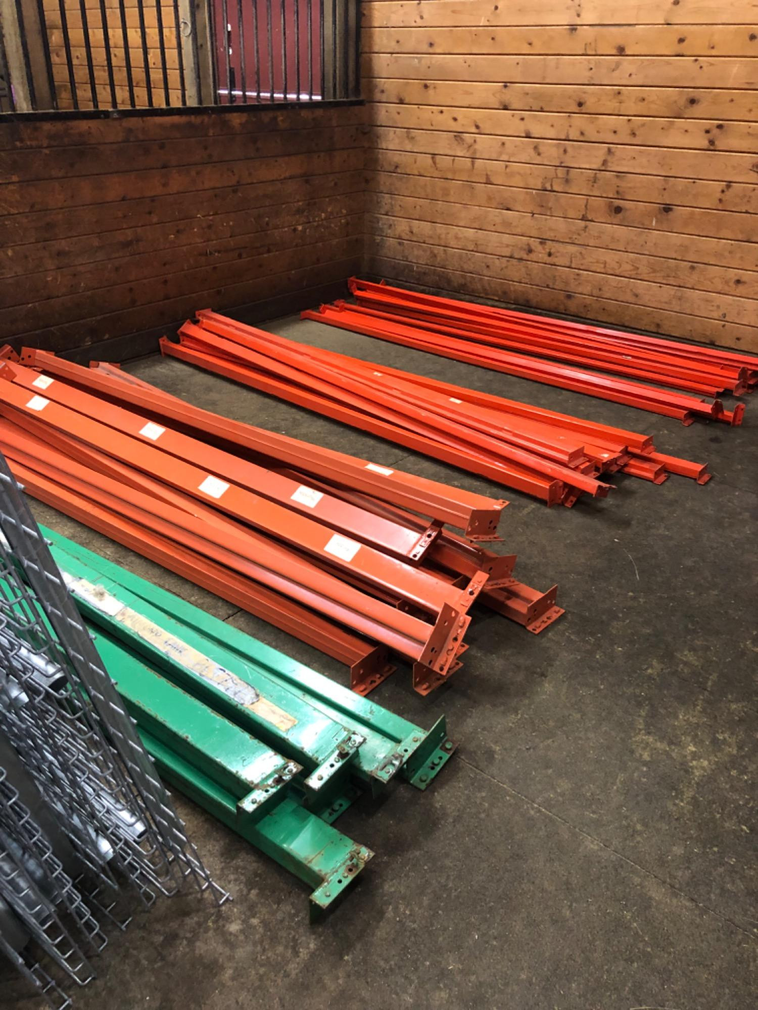 Assortment of Metal Industrial Shelving Parts Approximate length of metal runners - 100 Inches Please bring appropriate man power to lift and transport