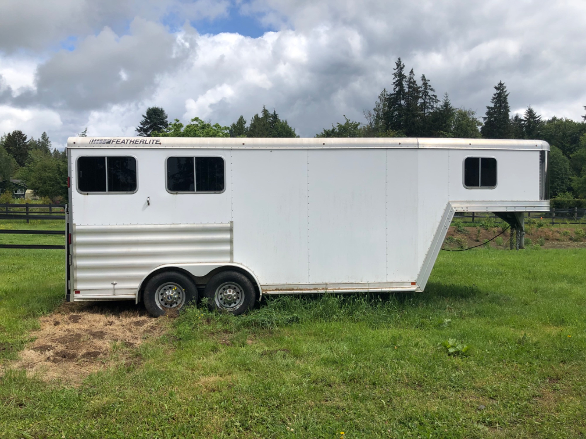 17’ Featherlite Aluminum “Goose Neck” 2 Horse Slant Trailer-Model 8541 Year Built: 2016 Extra tall and Extra Wide Trailer Length - 17' Width - 7.5' Dual Axel Gross Vehicle Weight - 9600lb Lots of tread left on all tires In Working Condition Click here for more specifications