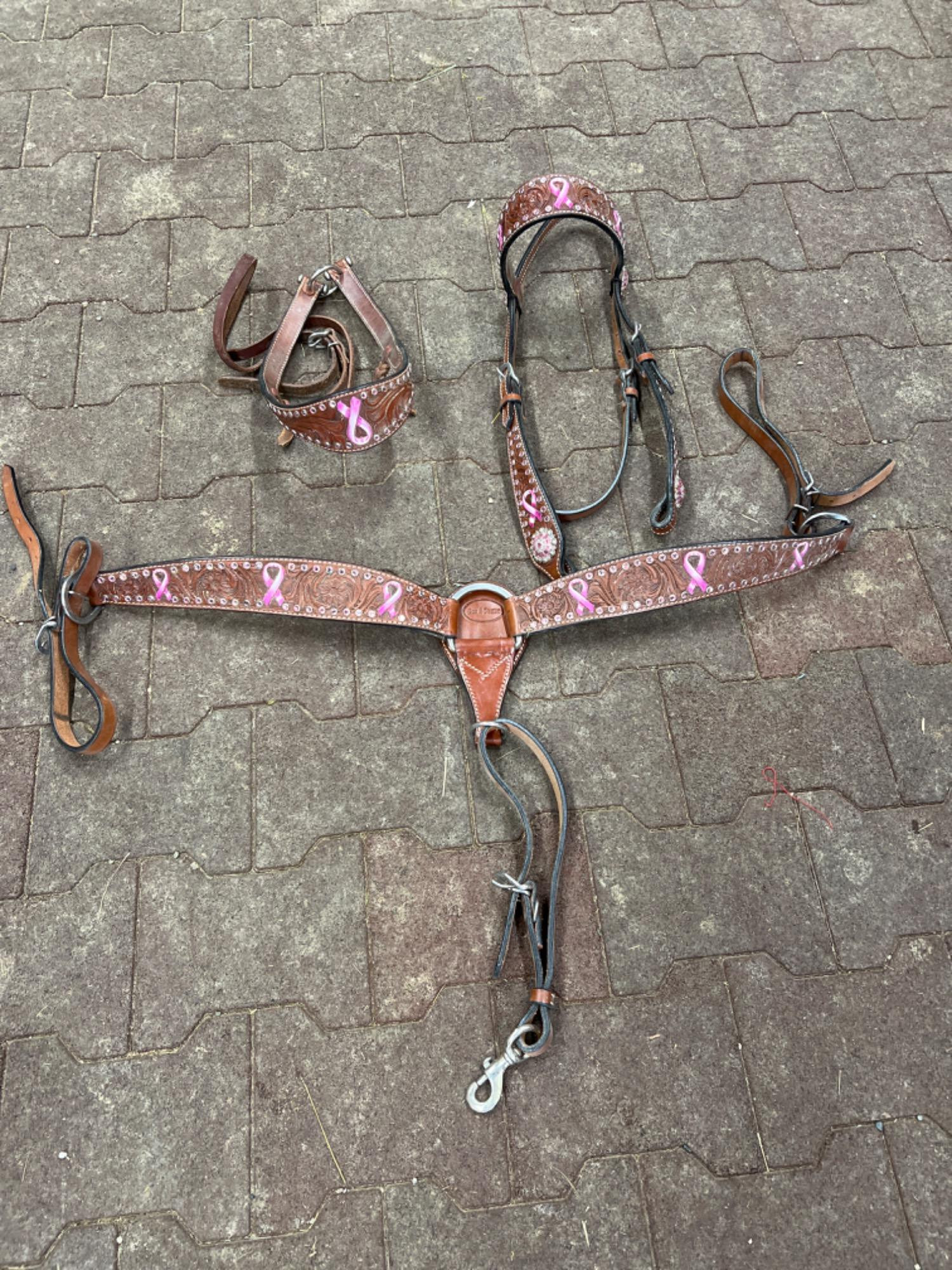 Lot # 4 - Bar H Equire Breast Cancer Awareness Horse Tack Set