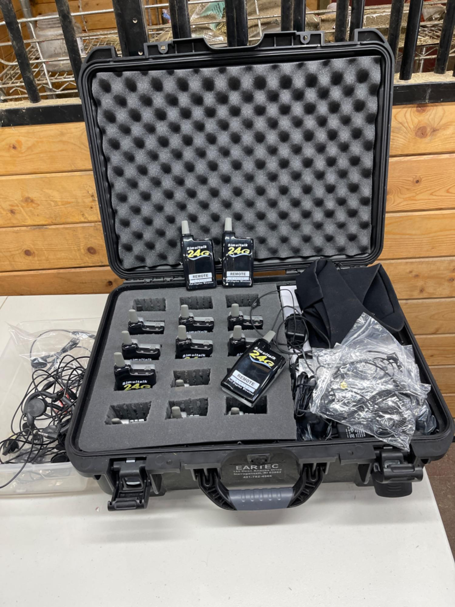 Simutalk Made By EarTec Includes one master controller, 14 remote radios, 2 cyber headsets for 24G Radio 14 loop headsets with lapel microphones Includes protective carrying case Perfect For Clinics - The Eartec System