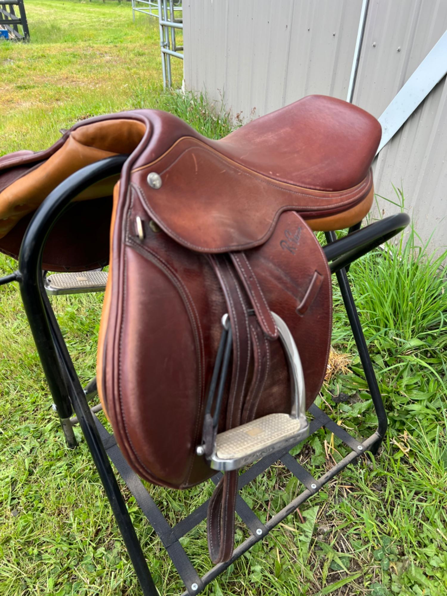 R. Pessoa brand leather pony saddle. Rodrigo style. #455753. Designed for Nelson's son, Rodrigo, to adjust to the wide back of ponies and yet fit the youth rider.