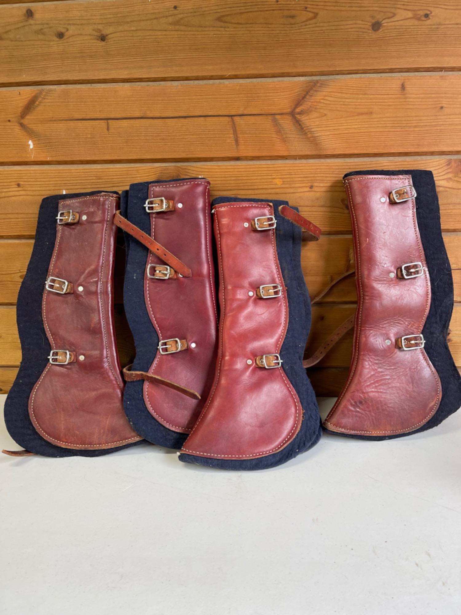 Shipping Open Boots - black fleece lined and deep brown front leather with buckle straps.