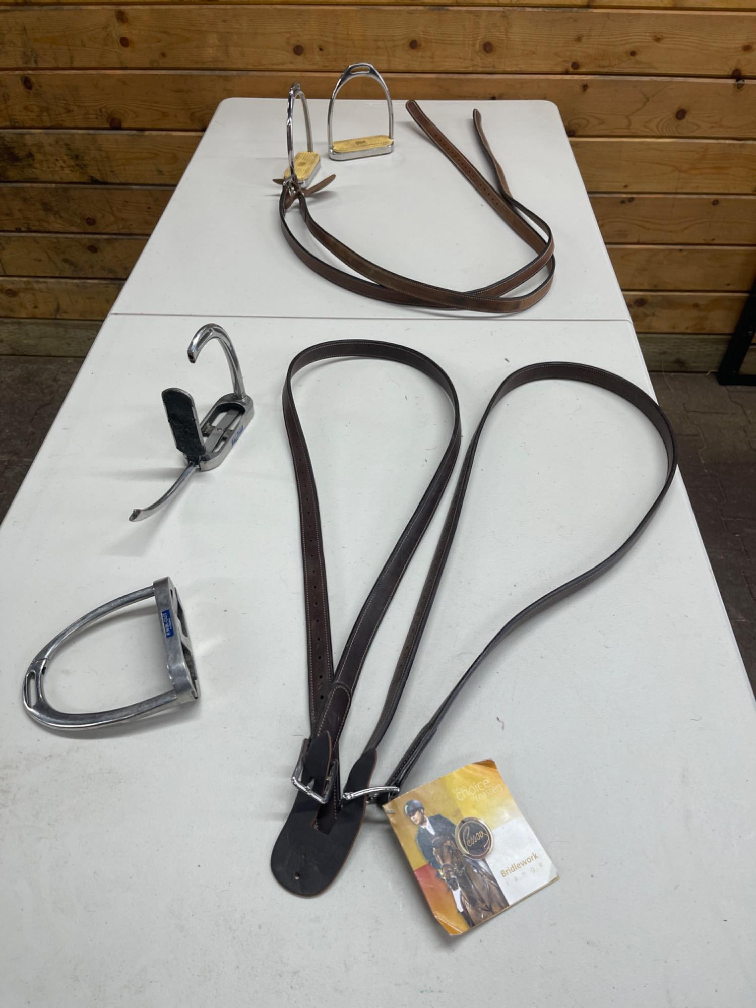 Inside measurement of both stirrups are 4 1/2” Two sets of Pessoa Stirrup Leathers - One Kwik-Out & One Standard