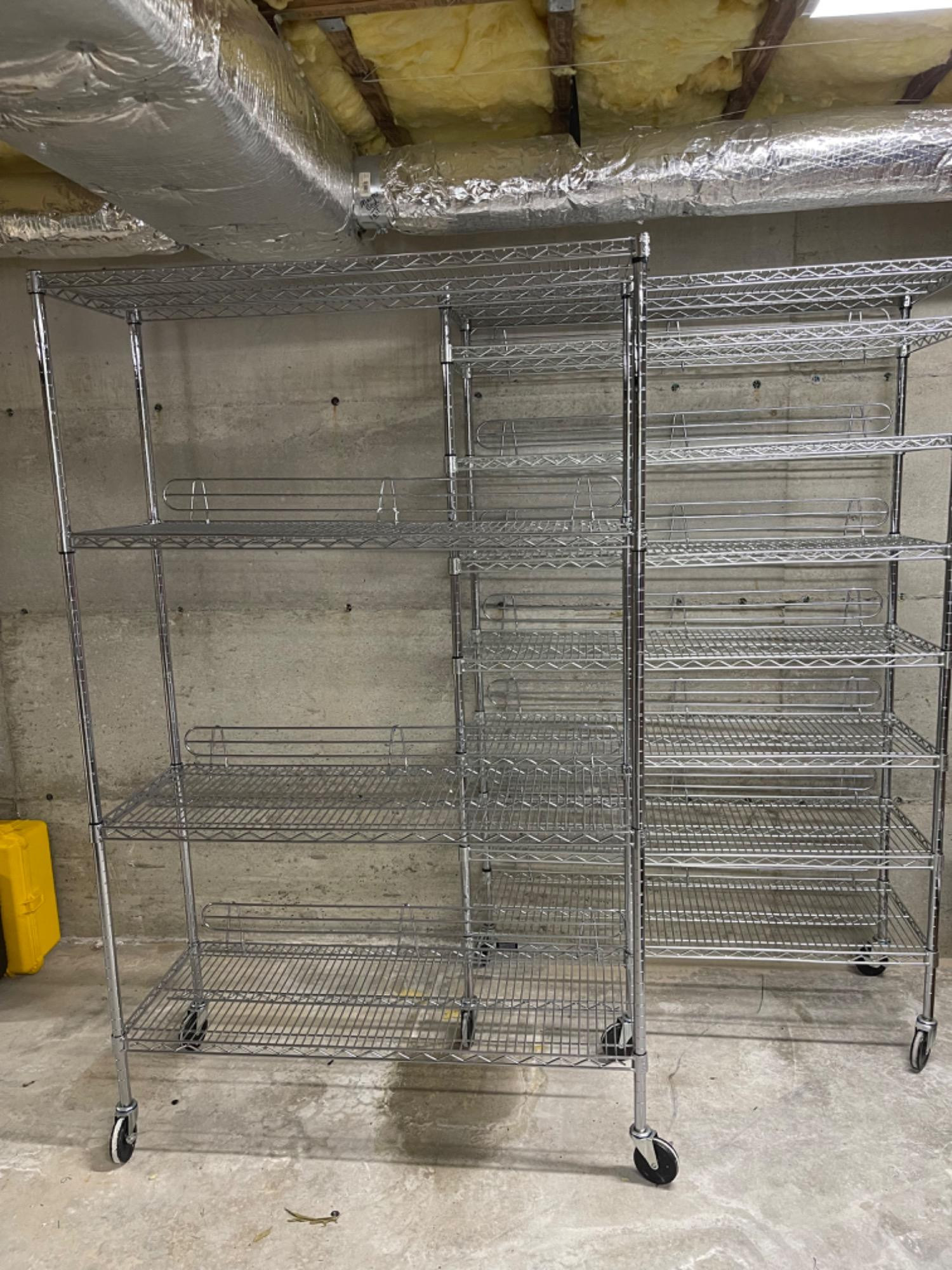 Two Chrome Wire Rolling Storage Racks Approximate Dimensions: Height - 77 Inches Width - 47.5 Inches Depth - 18 Inches Bidding on this lot is an agreement that: (1.) If you intend to disassemble this item for transport, that you will bring the necessary tools to do so and you have the manpower to disassemble and lift and place in your vehicle. If these