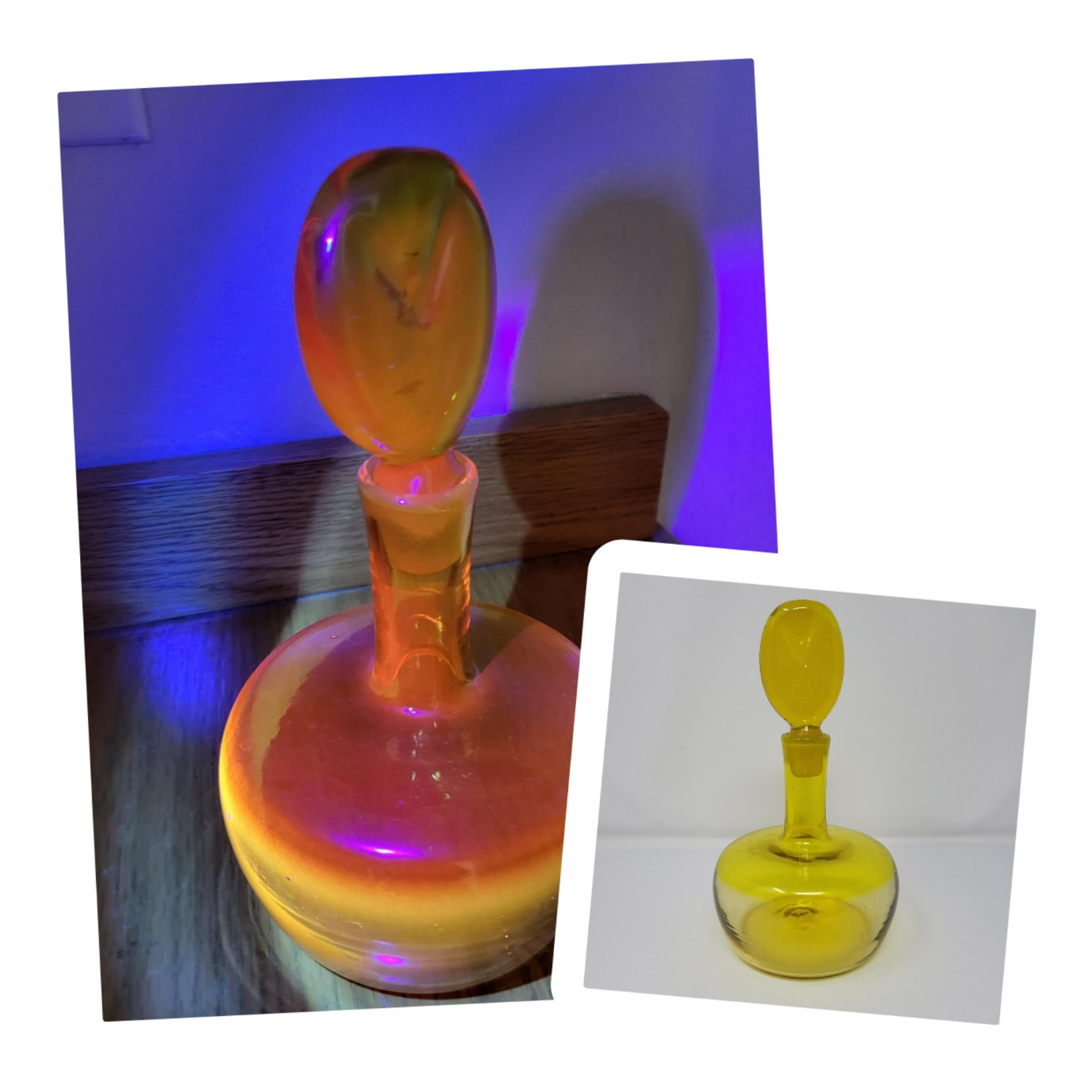 Lot # 52 - 1960's Blenko Vaseline Glass Decanter 9" With Lollipop Stopper