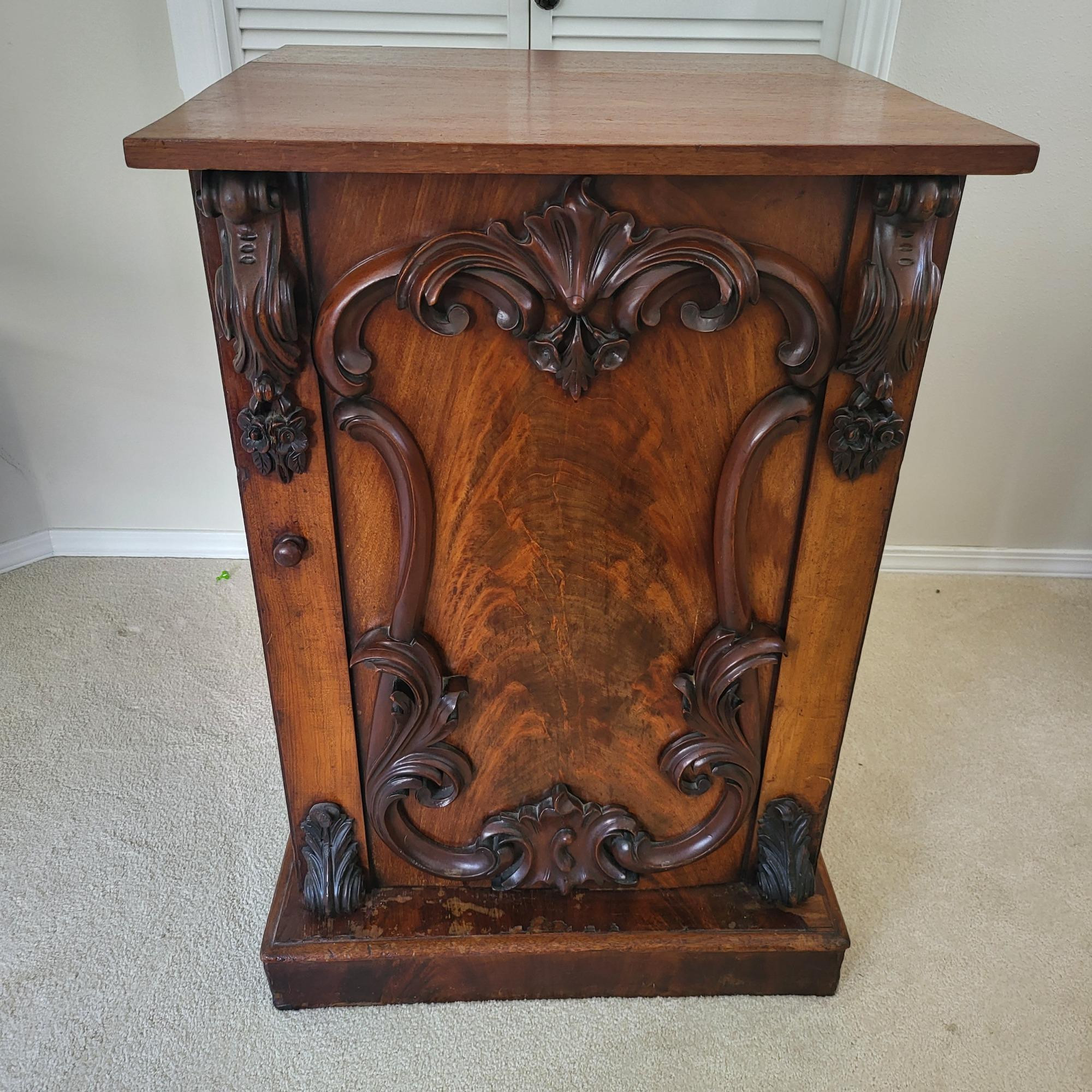 Handcrafted cabinet (pissibly from reclaimed wood), features applied wood carved detail on front door and the rest of the cabinet looks more rustic/farmhouse style. Interesting side lock (no key). Top drawer and two shelves. Overall measurements 24" long x 34.5" tall x 23" deep. Interior shelf is 20.5" wide x 19.5" deep. Bidding on this lot is an agreement that: (1.) You will have 2 capable, able bodied persons to lift and load at a minimum. (2.) You will bring a hand truck and/or any other tools needed to remove this item. If these steps are not followed your item will be forfeit and no refund given. Note* Item is located on second floor with a flight of stairs to get to the front door and few outside stairs leading to a 20 degree steep driveway. Parking at the top of the driveway where it is flatter will make it easier for you to load.