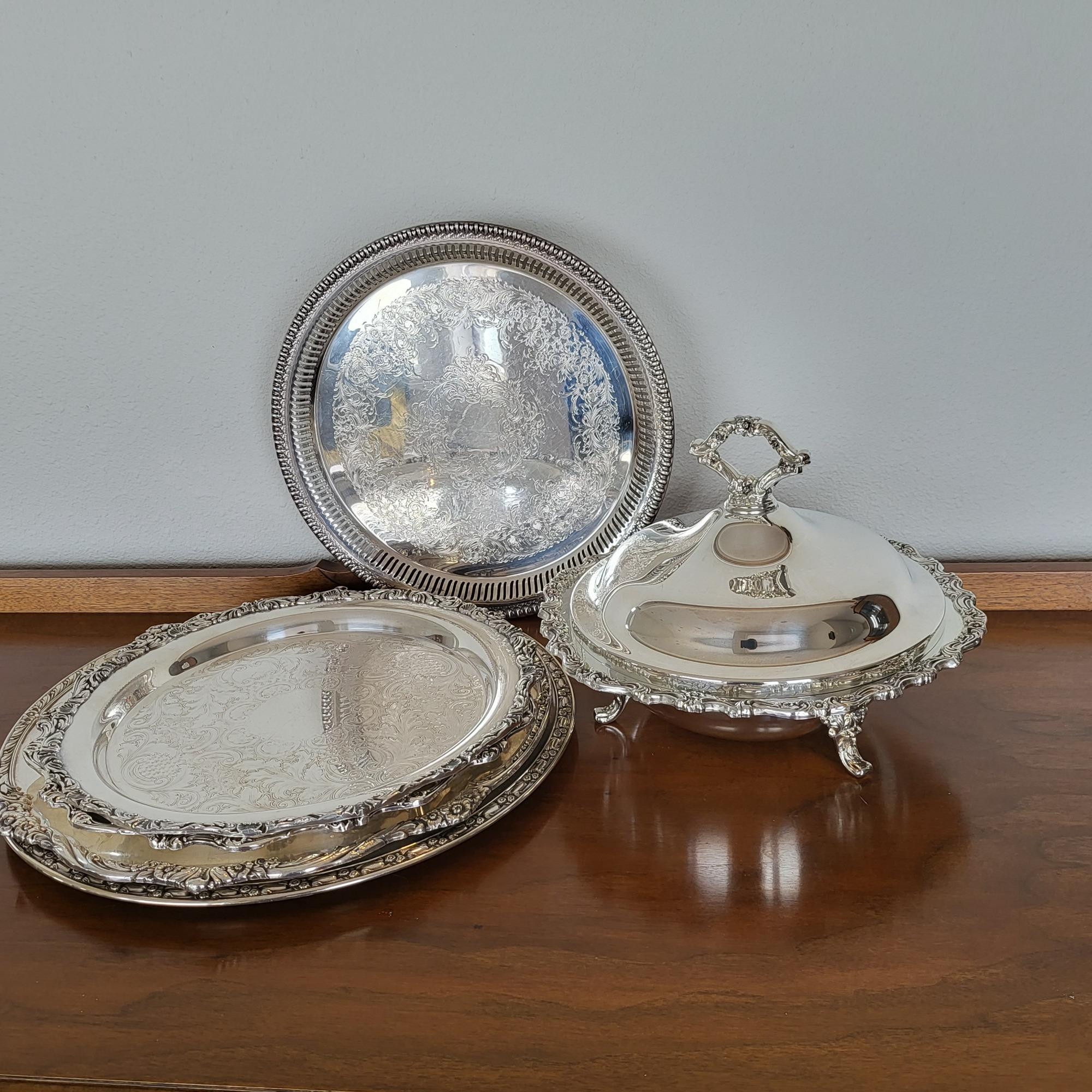 Lot # 73 - Platters and Covered Serving Dish Webser Wilcox, Cresent, Rogers Bros