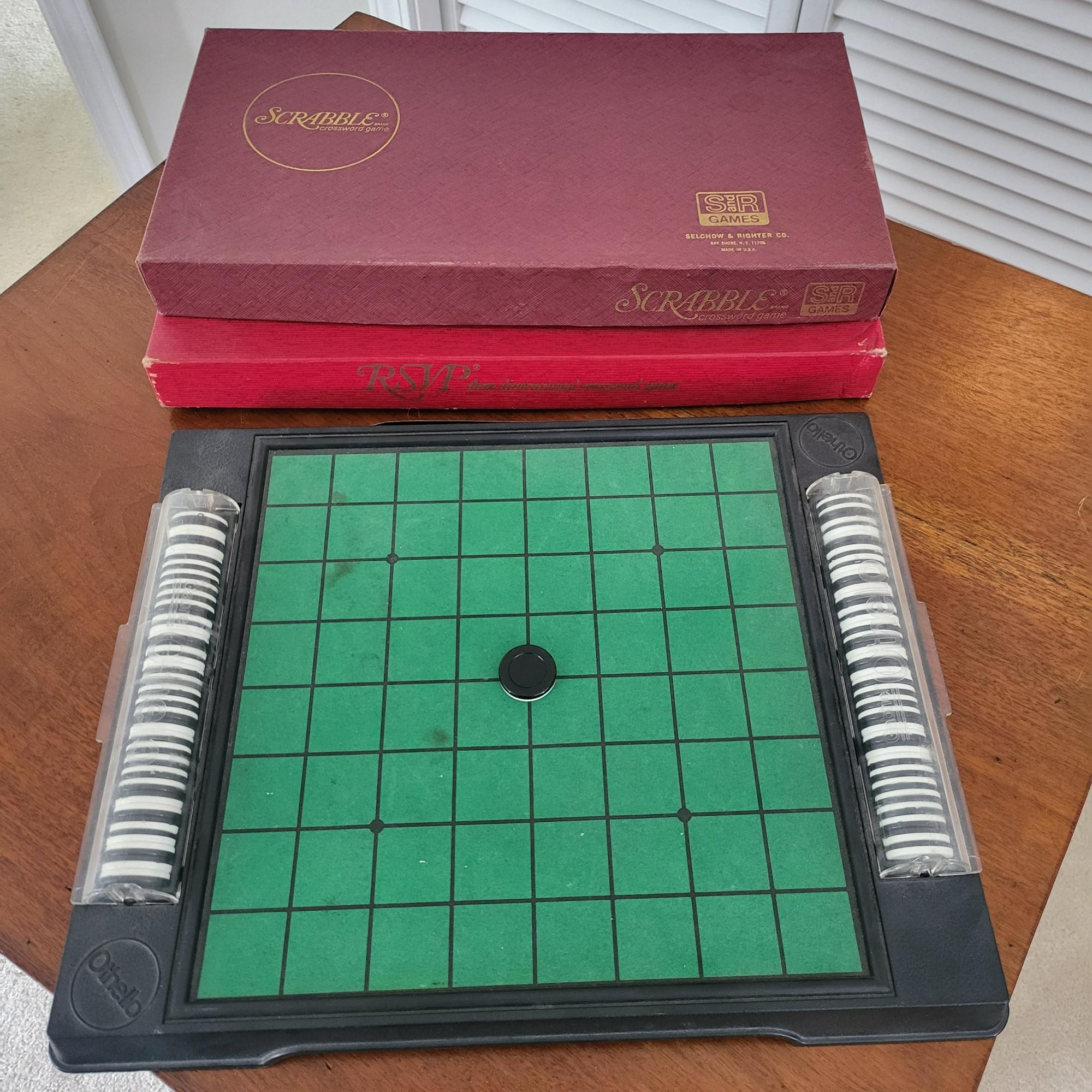 Four vintage board games: Scrabble, Scrabble RSVP, Othello & Break Out.