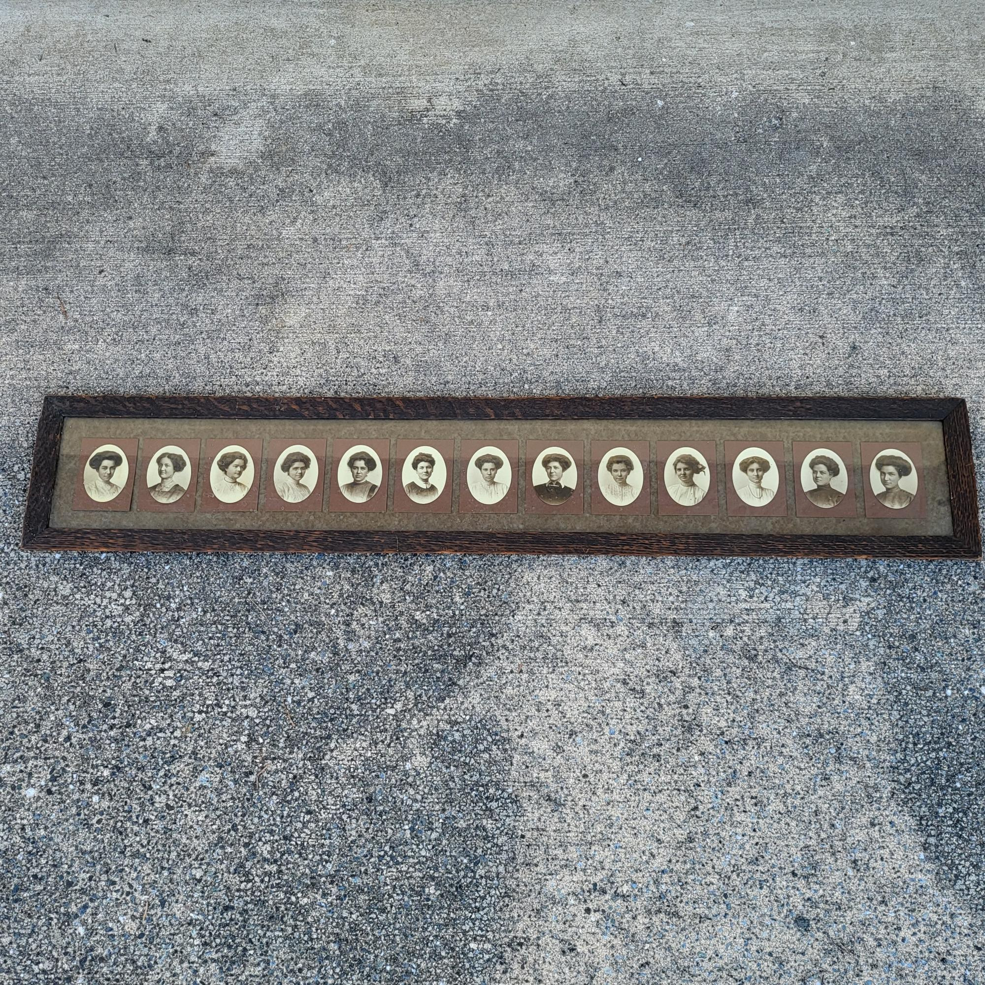 Cool, antique wood framed portrait of thirteen women, 41" long x 7" tall. It's unknown of who they are but likely some kind of club.