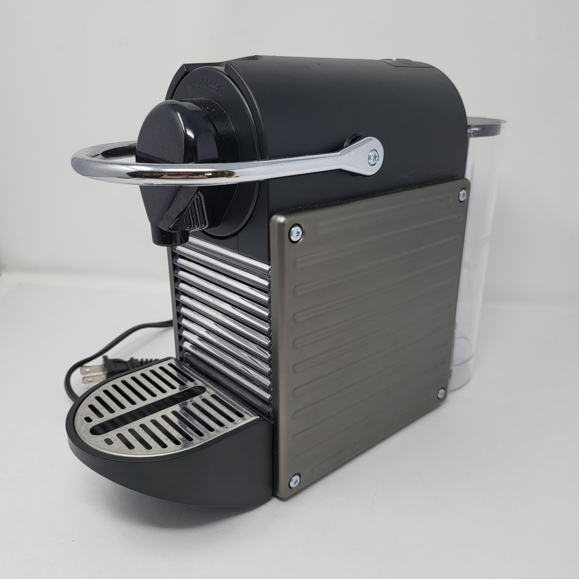 Breville electric espresso machine 12" tall (including handle) x 4" wide x 12" deep. Removable drip tray and water reservoir.