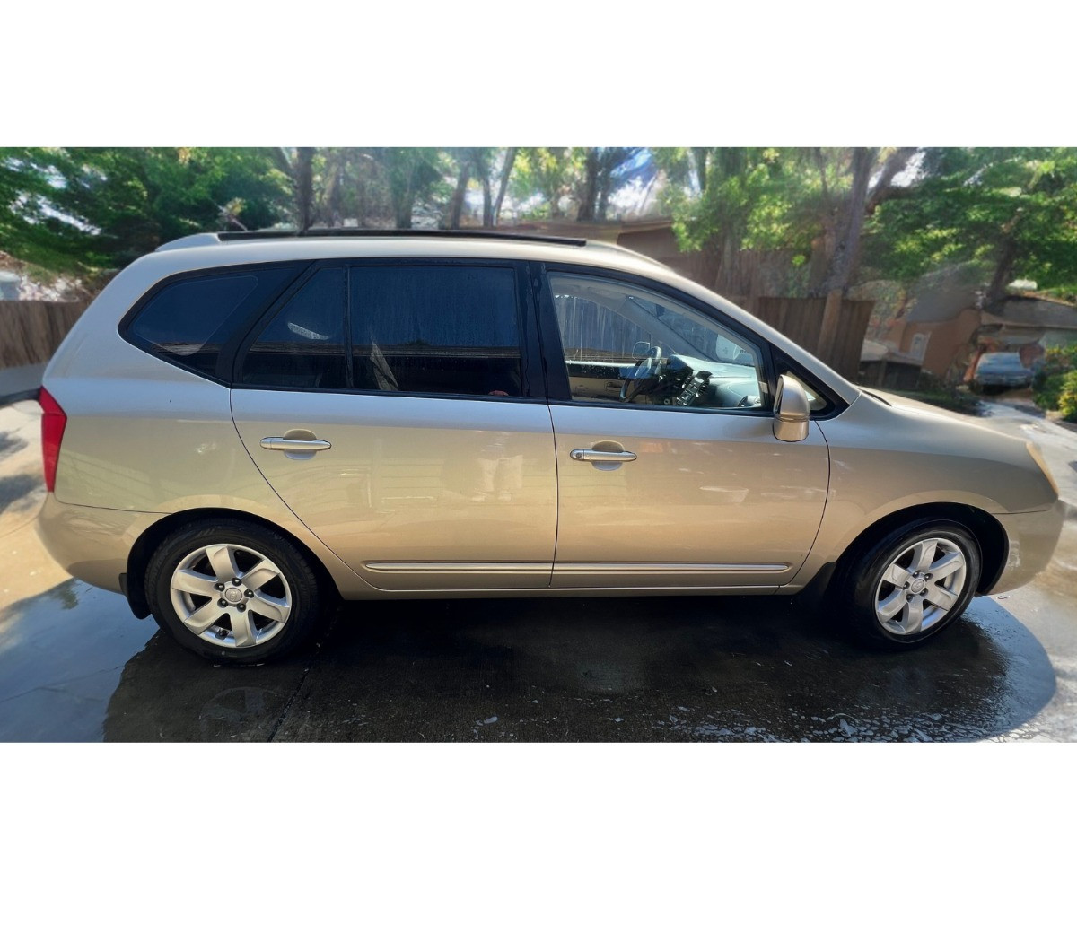 2007 KIA Rondo LX Wagon Passenger Vehicle - 4 Door, 4 cylinder - 2.4 liter engine, VIN KNAFG525577076579. Light beige. Approximately 74,480 miles. Vehicle is in working condition. Front wheel drive. One key. Automatic transmission. Good amount of tread on tires. No visible dents on body - minor scratches on bumper. Interior seat upholstery could use a clean, original Rondo mats, smoking exposure. Clear title. Maintenance history. Original vehicle manuals. Buyer will be responsible for state license fees (currently expired) and tax at time of transfer.