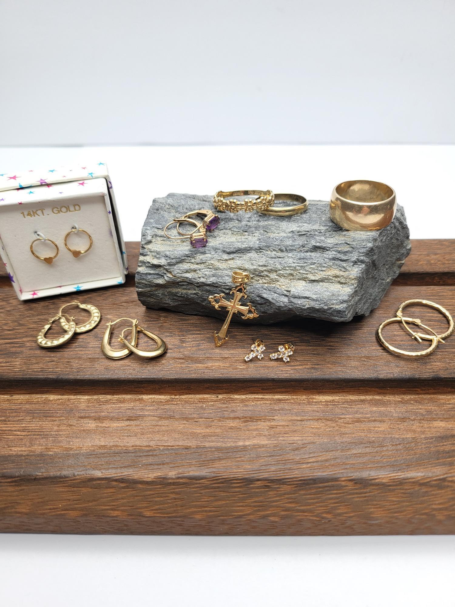 Lot # 5 - Gold 14K/10K Earrings, Rings, Cross Pendant TOTAL 17gr