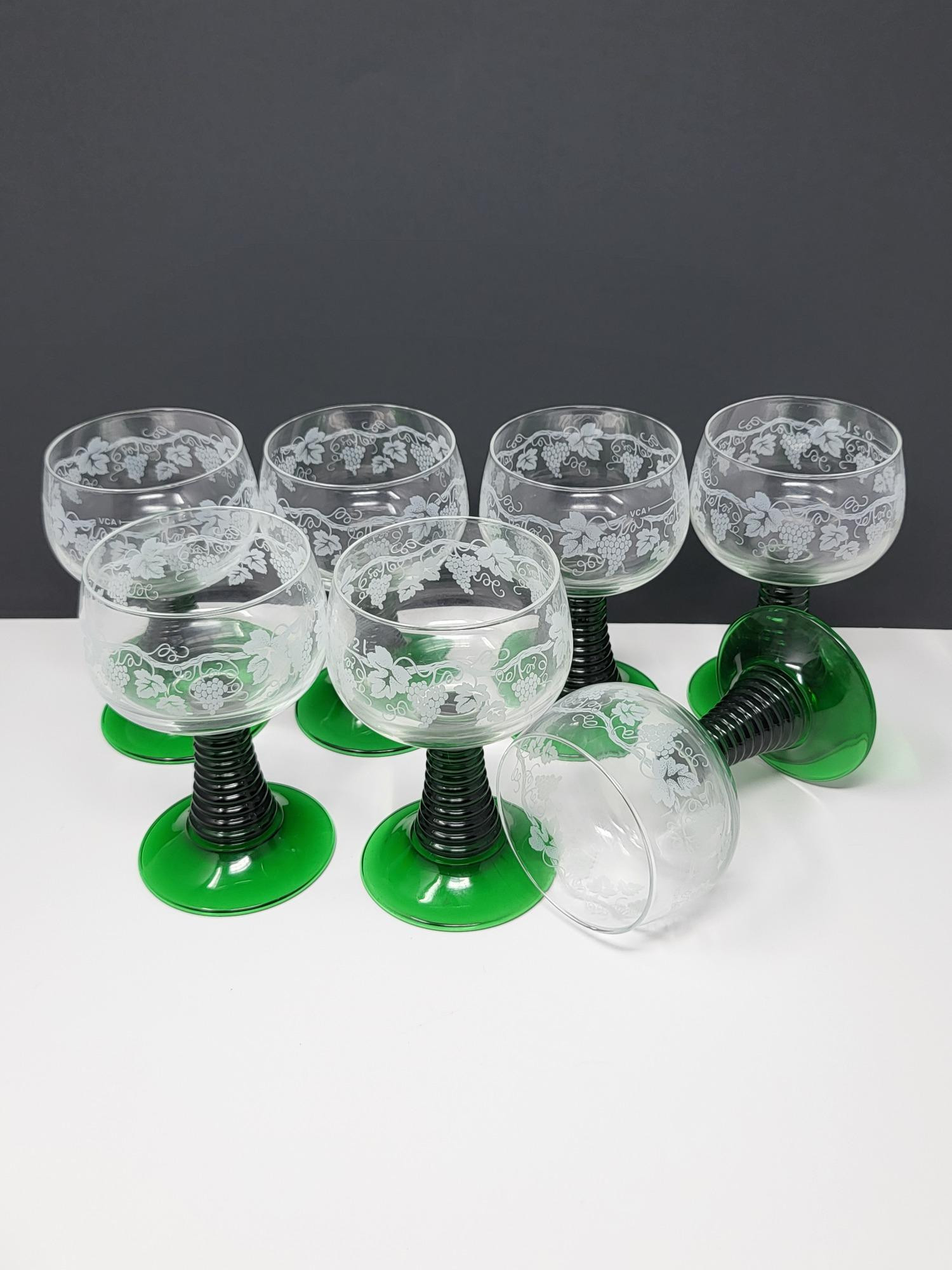 Lot # 43 - Mid Century Luminarc Roemer Green Beehive Stemmed Wine Glasses