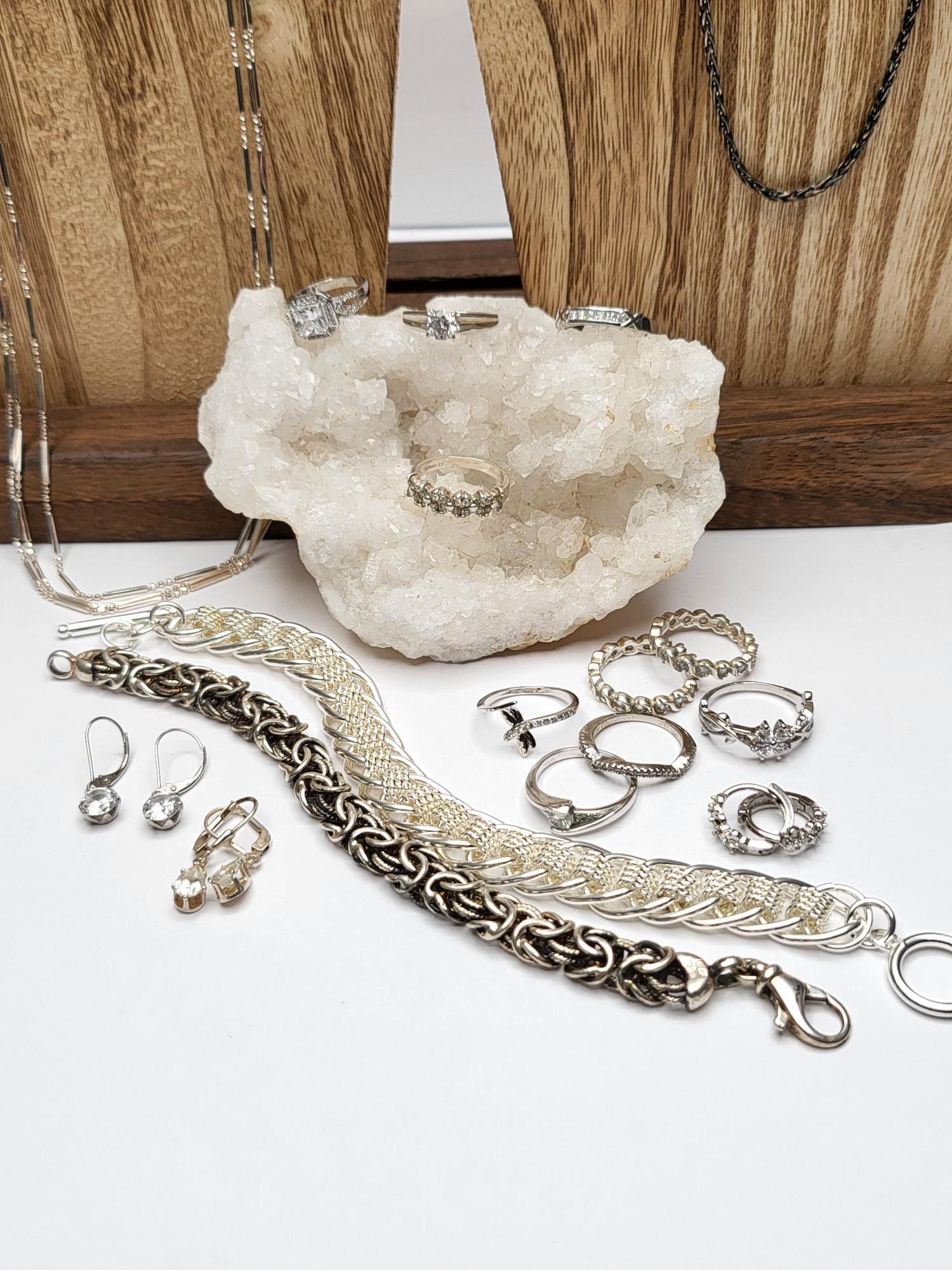 Lot # 114 - Sterling Necklaces, Bracelets, Rings, Earrings 100gr