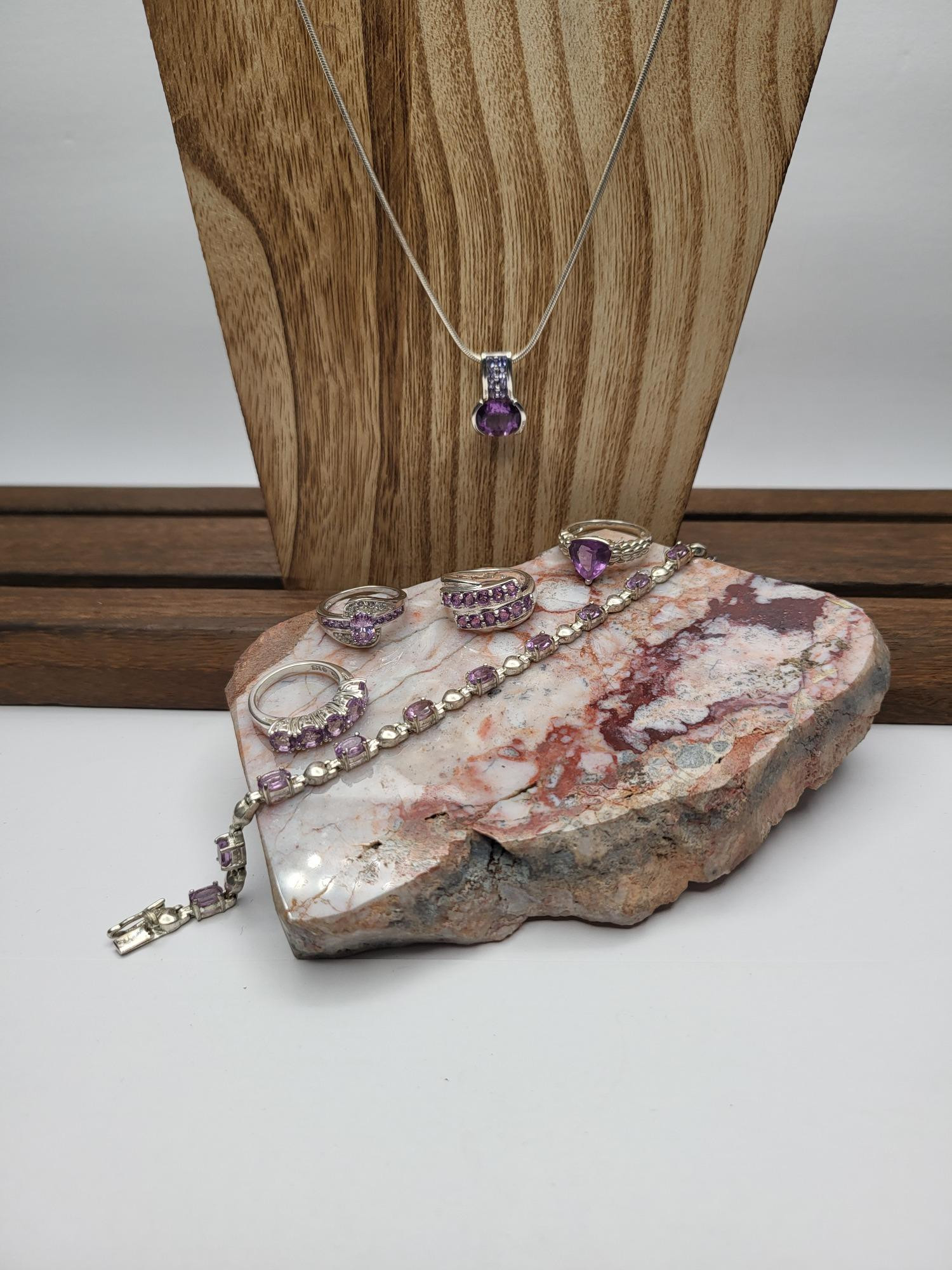 Lot # 47 - Sterling Silver & Amethyst Rings and More 57gr