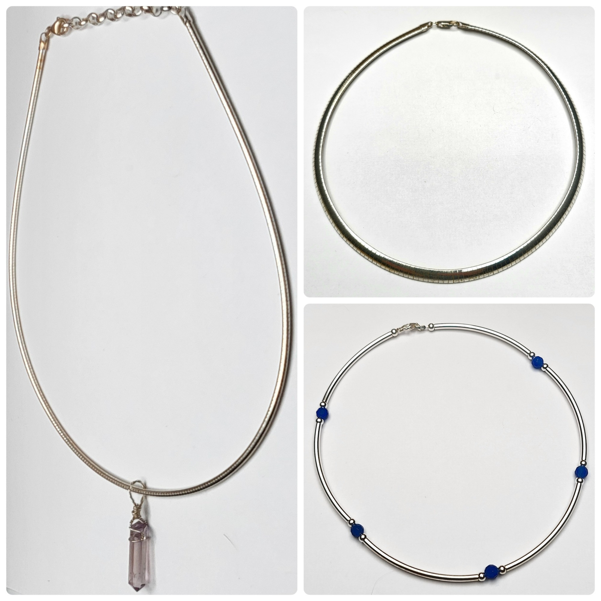 Lot # 96 - Sterling Omega Chain & Italy Tube Collar Necklaces 59gr