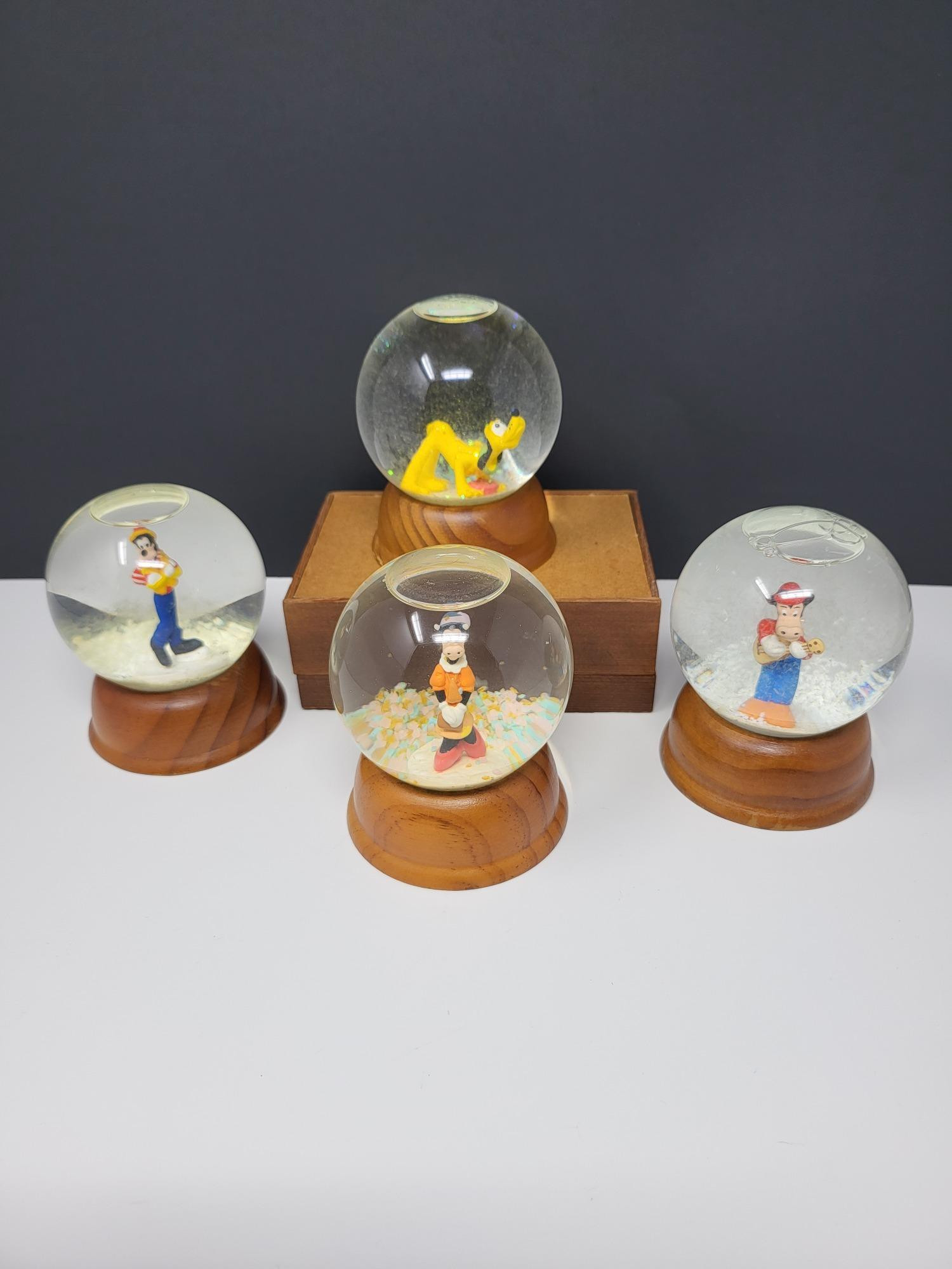 Globes are 3" diameter x 4" tall on wood base. Pluto, Clarabelle Cow, Horace Horsecollar, Goofy