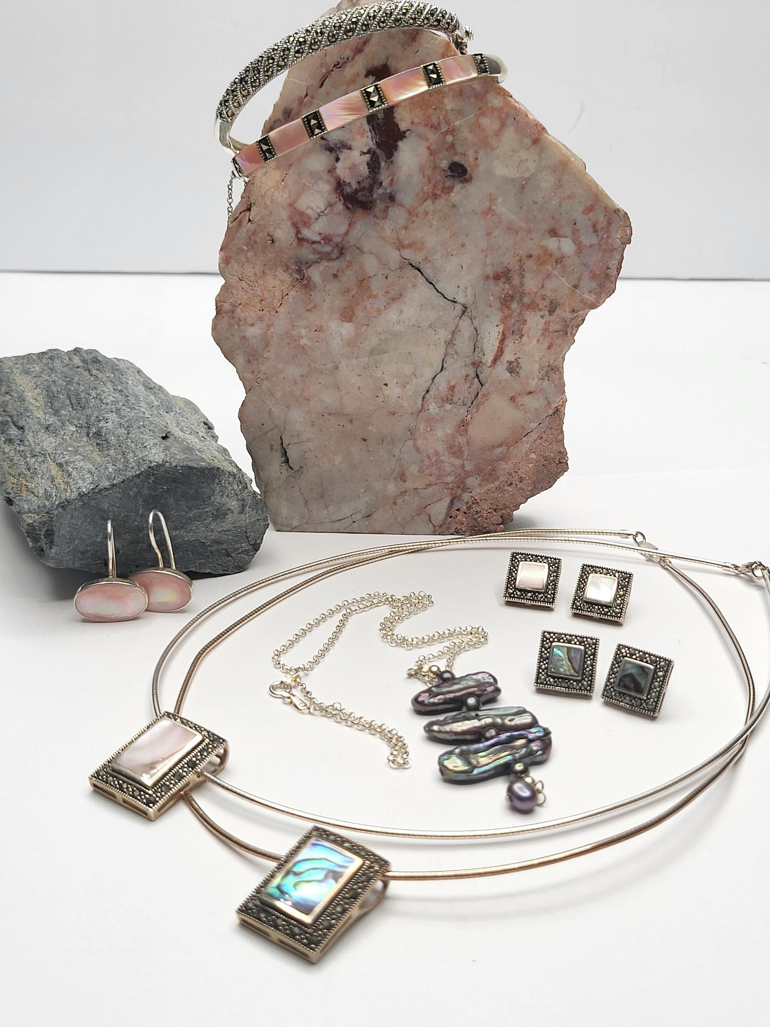 Lot # 134 - Marcasite & MOP With Sterling Silver Jewelry 68gr