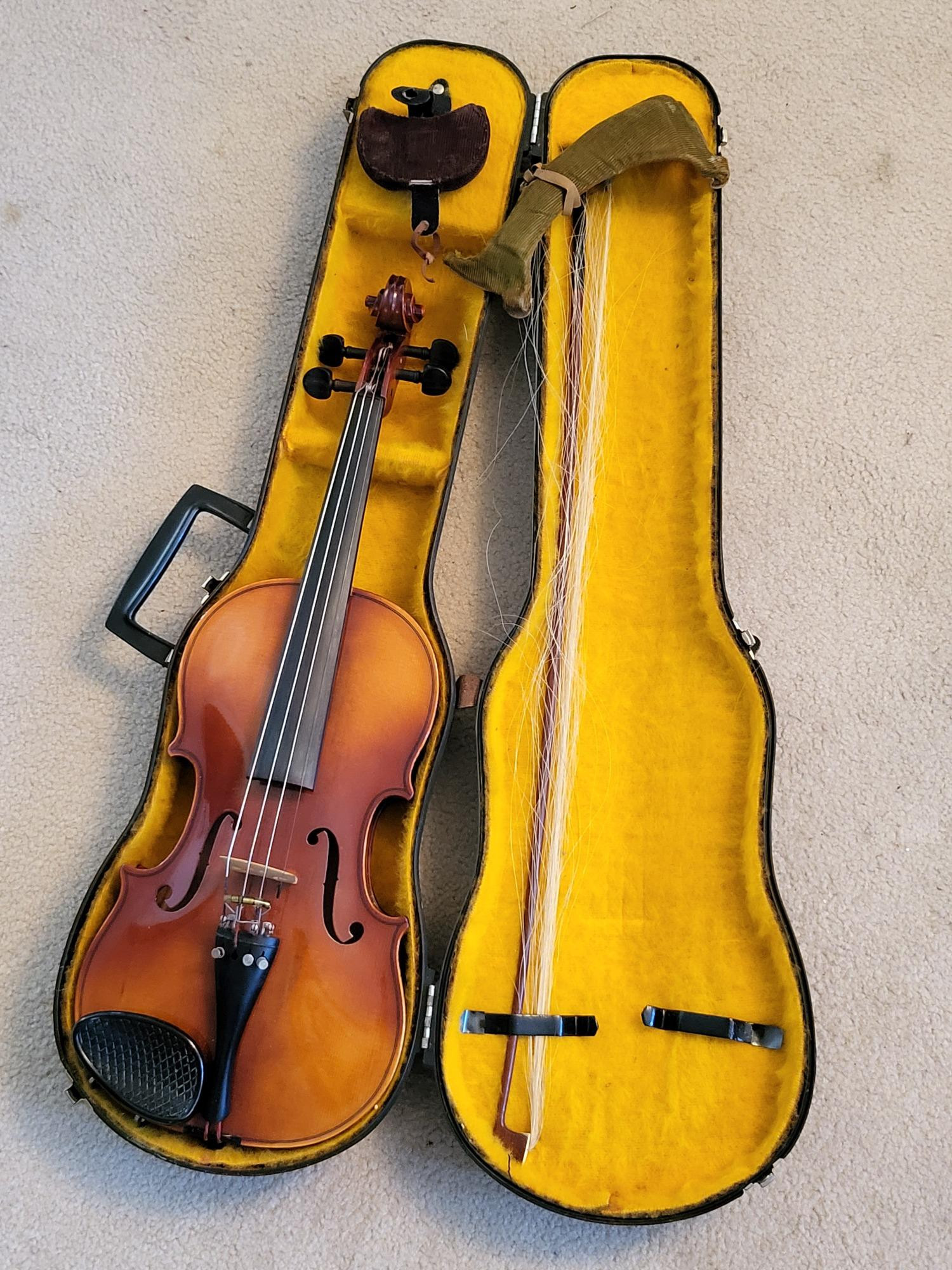 Vintage violin, Josef Lorenz, Luby, Czechoslovakia. Top is likely solid spruce. Back, sides and neck solid maple. Includes original bow.