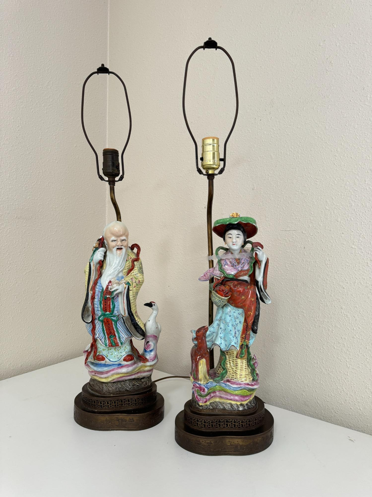 Lot # 3 - Antique Vintage Chinese Polychrome Porcelain Table Lamps