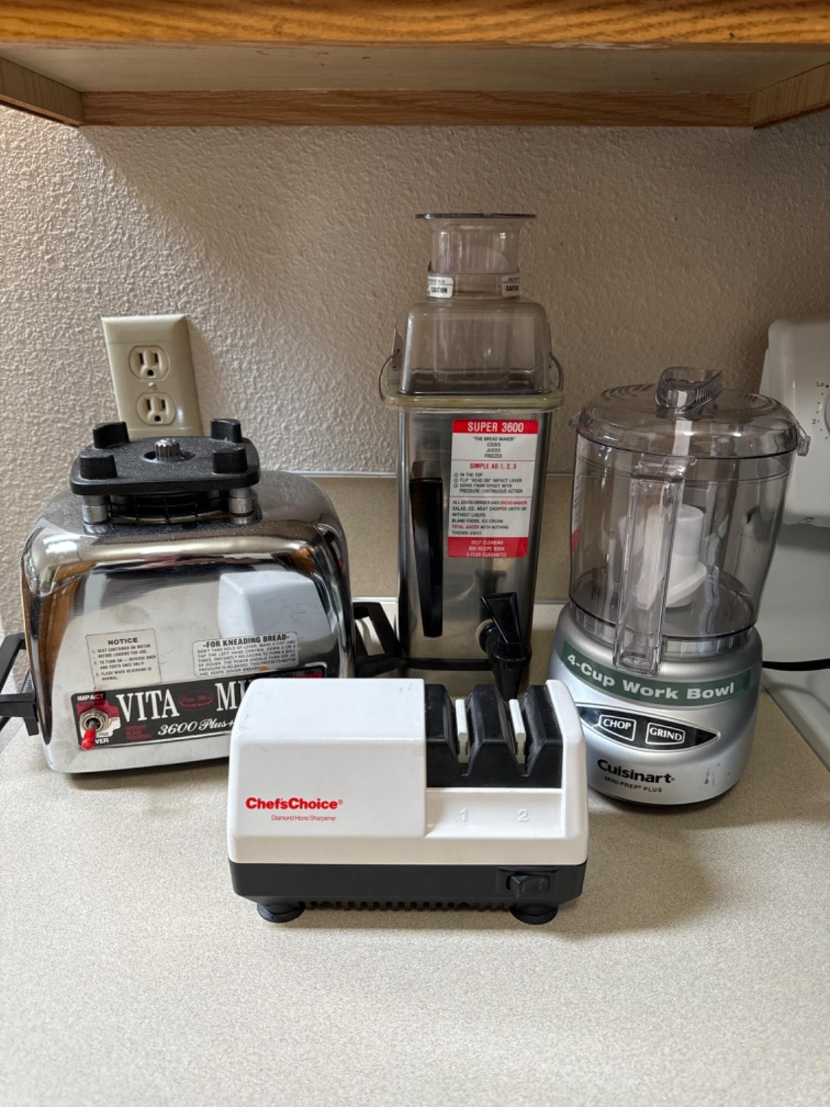Vitamix Super 3600 with stainless steel blender Cuisinart Mini Prep Plus with 4 cup work bowl Chef's Choice Knife Sharpener All turn on and work!