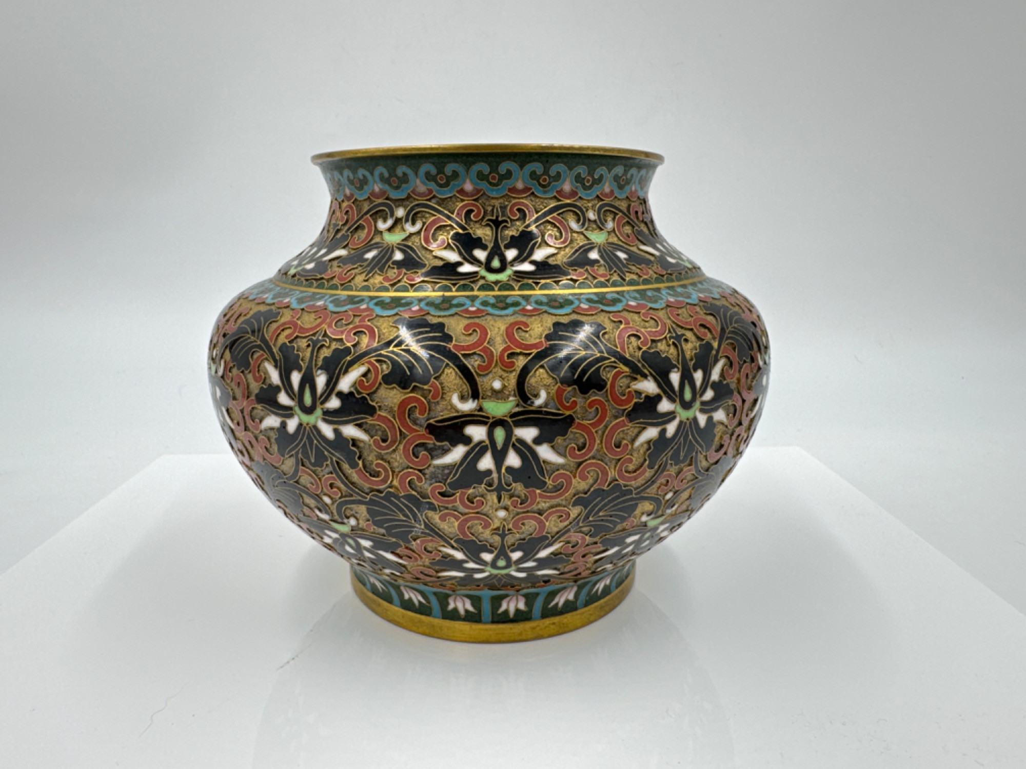 Exquisite Vintage Jingfa Brass Champleve Vase - Wireless Cloisonne 4.75"T x 6"W Beautiful condition