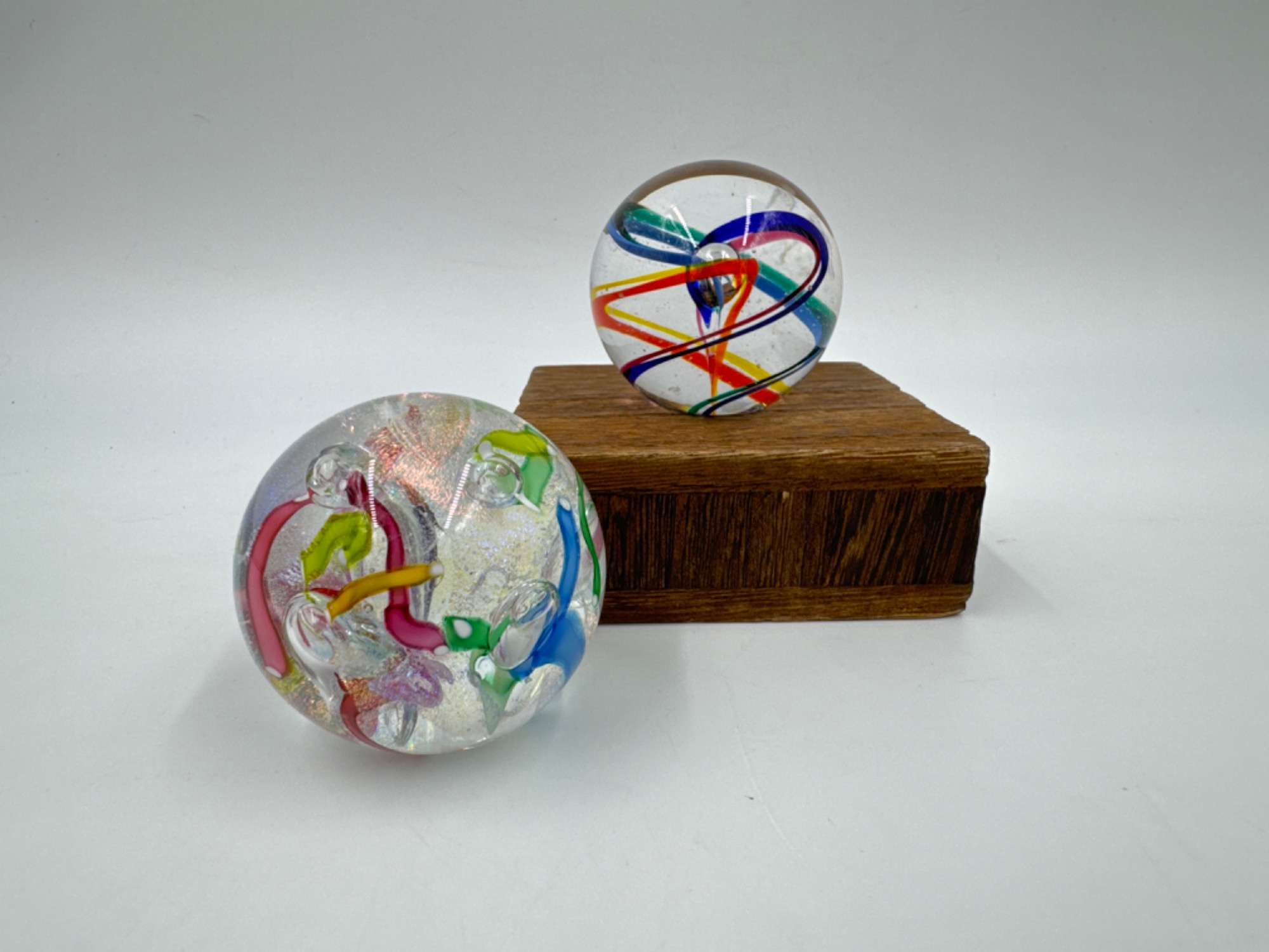 Vintage 1990s Glass Eye Studio Blown Glass Orb Paperweights Both are beautiful and in great condition Measures: 1.5” tall