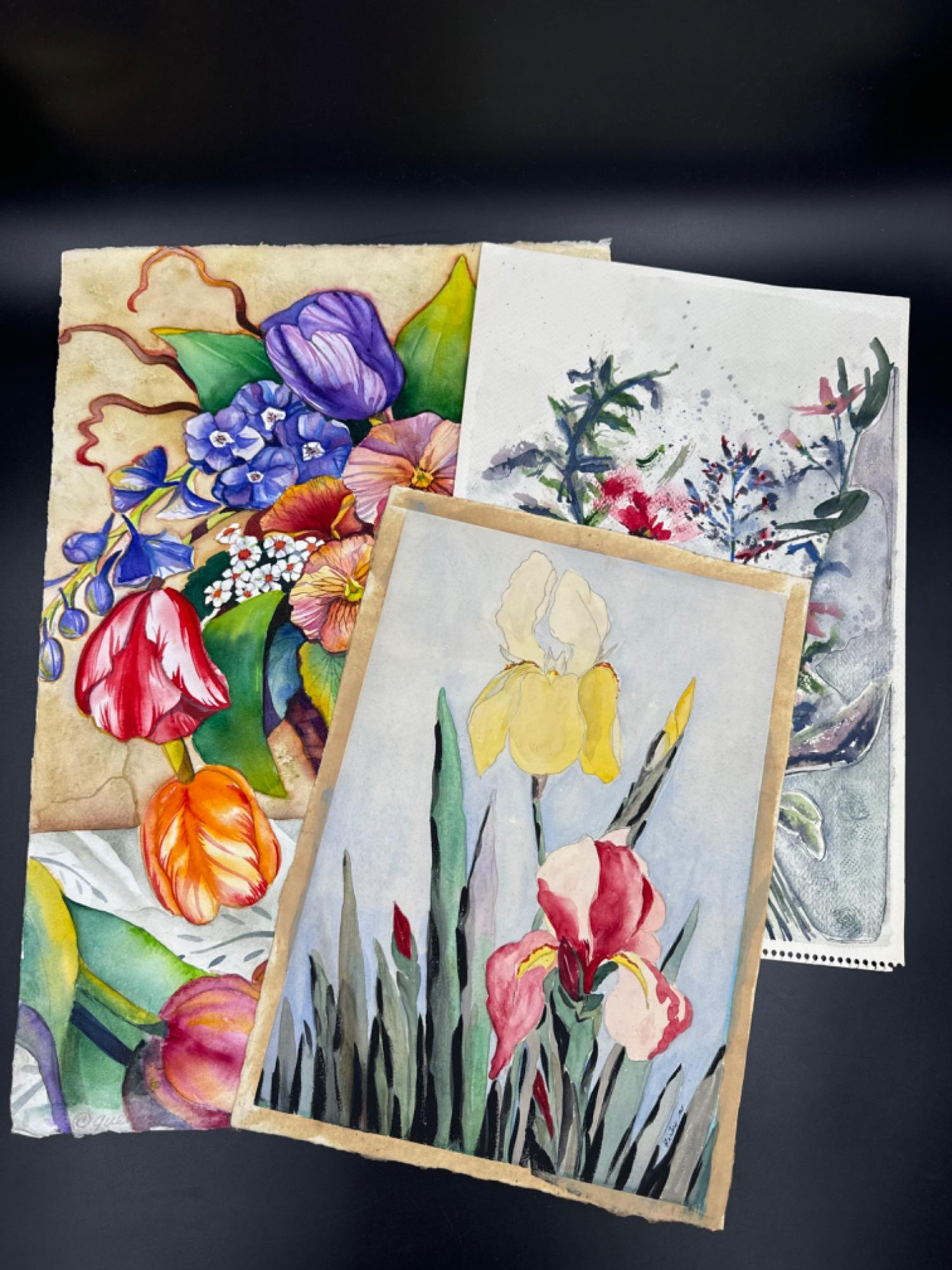 Lot # 68 - Vintage Original Vibrant Floral Watercolor Trio