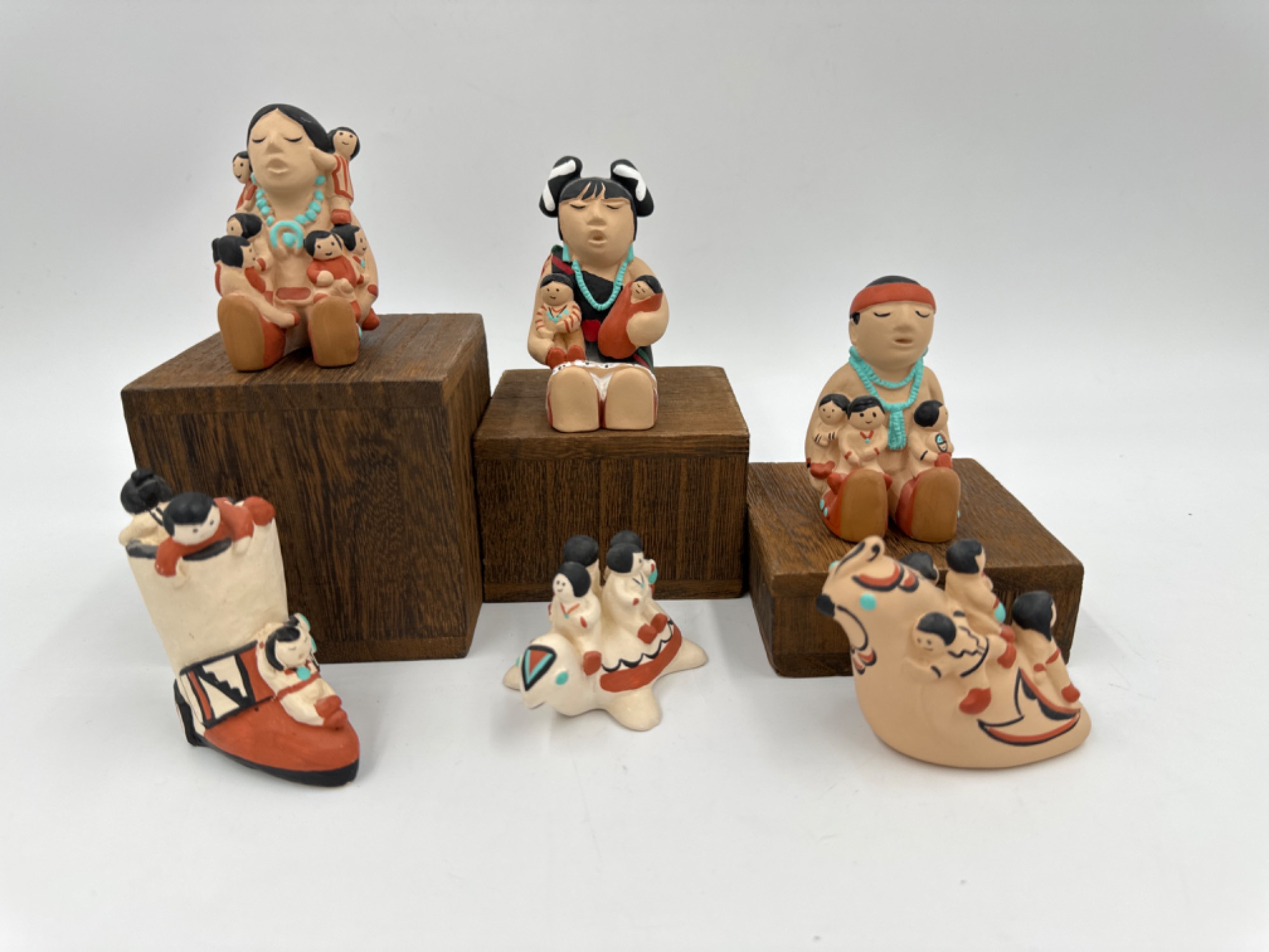 Vintage 1980s Cleo Teissedre American Indian Storyteller Figurines Shortest 1.5” Tallest 3” All are signed