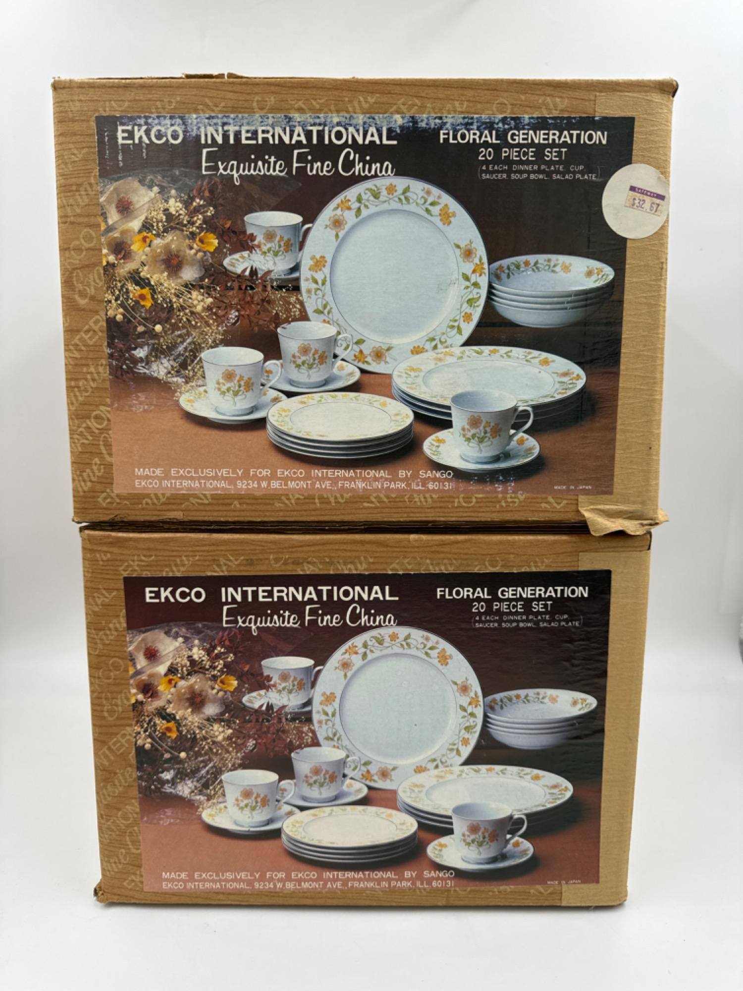 (2) New Old Stock Ecko International 20 pcs 'Floral Generation' Fine China Sets Sealed, never opened
