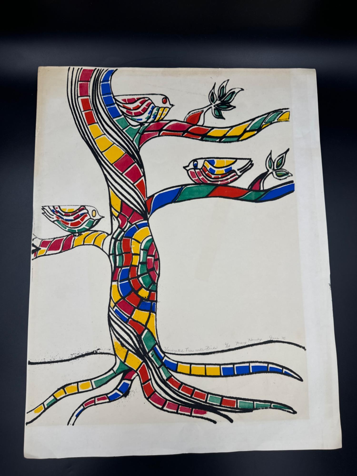 Lot # 88 - S/N 1975 Mary Hornby Variegated Tree w/Birds Litho Art Print - 6/12