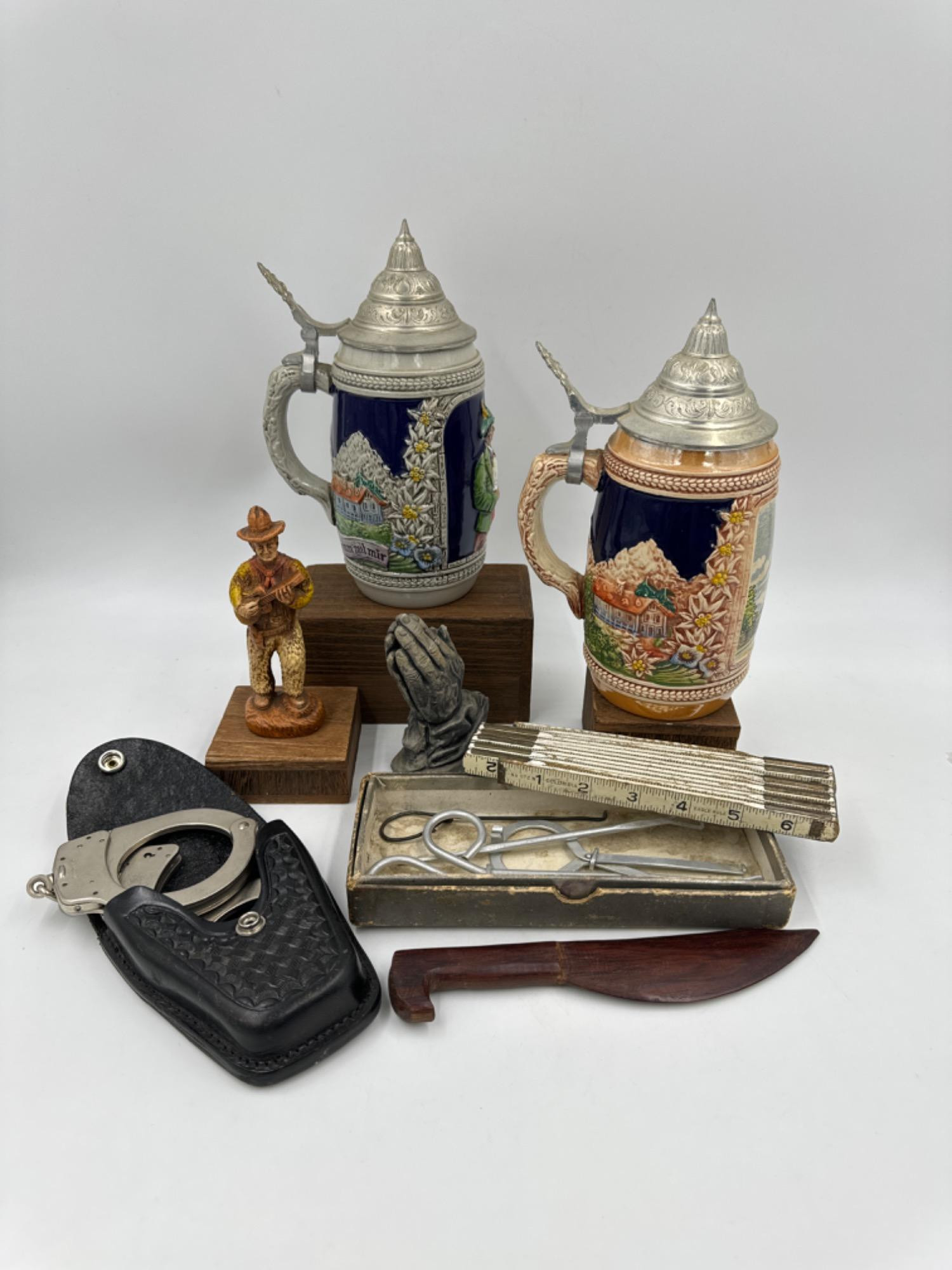Lot # 99 - Vintage Collectibles - German Steins - Smith & Wesson Cuffs +