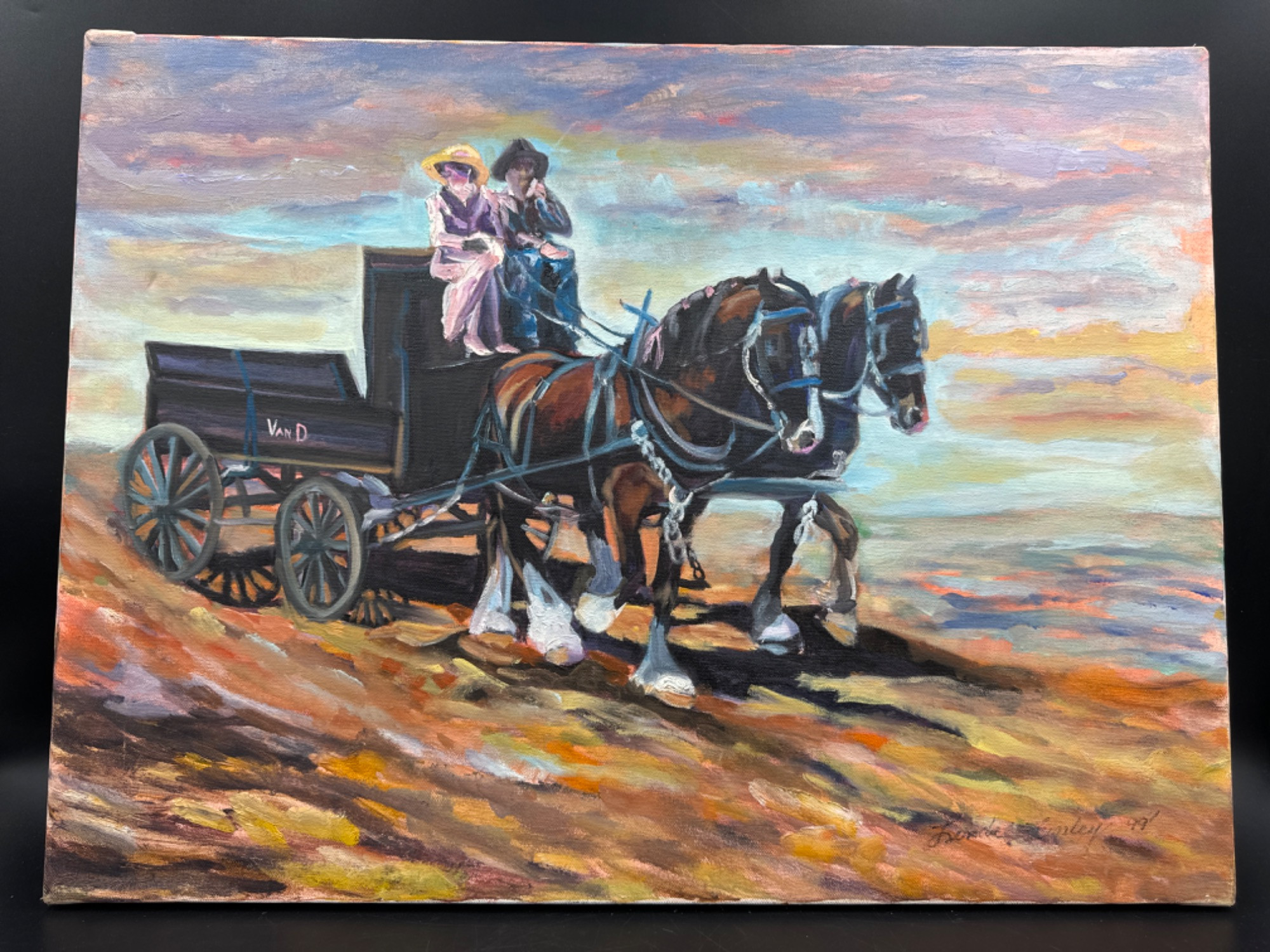 Signed Original Impressionist Prairie Couple & Horses Painting Measures 24" x 18"