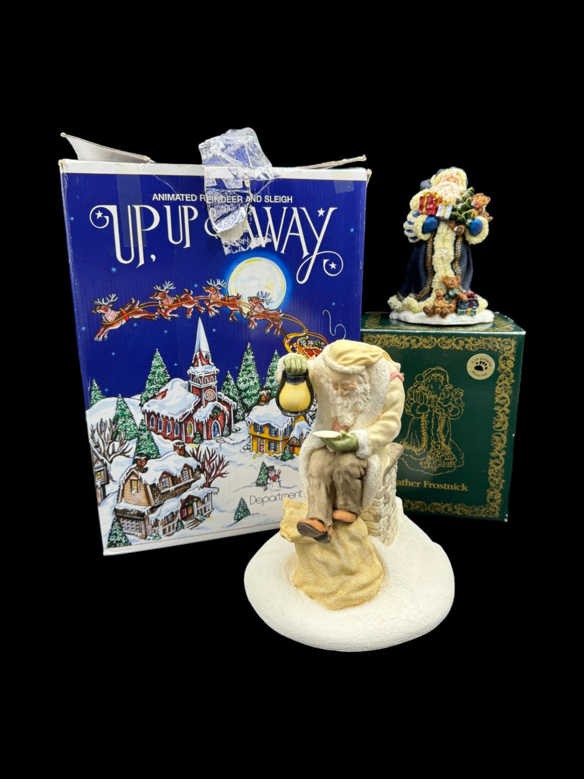 Christmas Trio - The Legend of Santa Clause - Dept. 56 Up, Up & Away 1996 The Legend of Santa Claus "A light on the roof Victorian" by Ken Memoli number 368 of 7500 pieces- 9"T x approx. 7.75"D - no box Boyds Bears Father Frostnick Dept. 56 Up, Up & Away - works