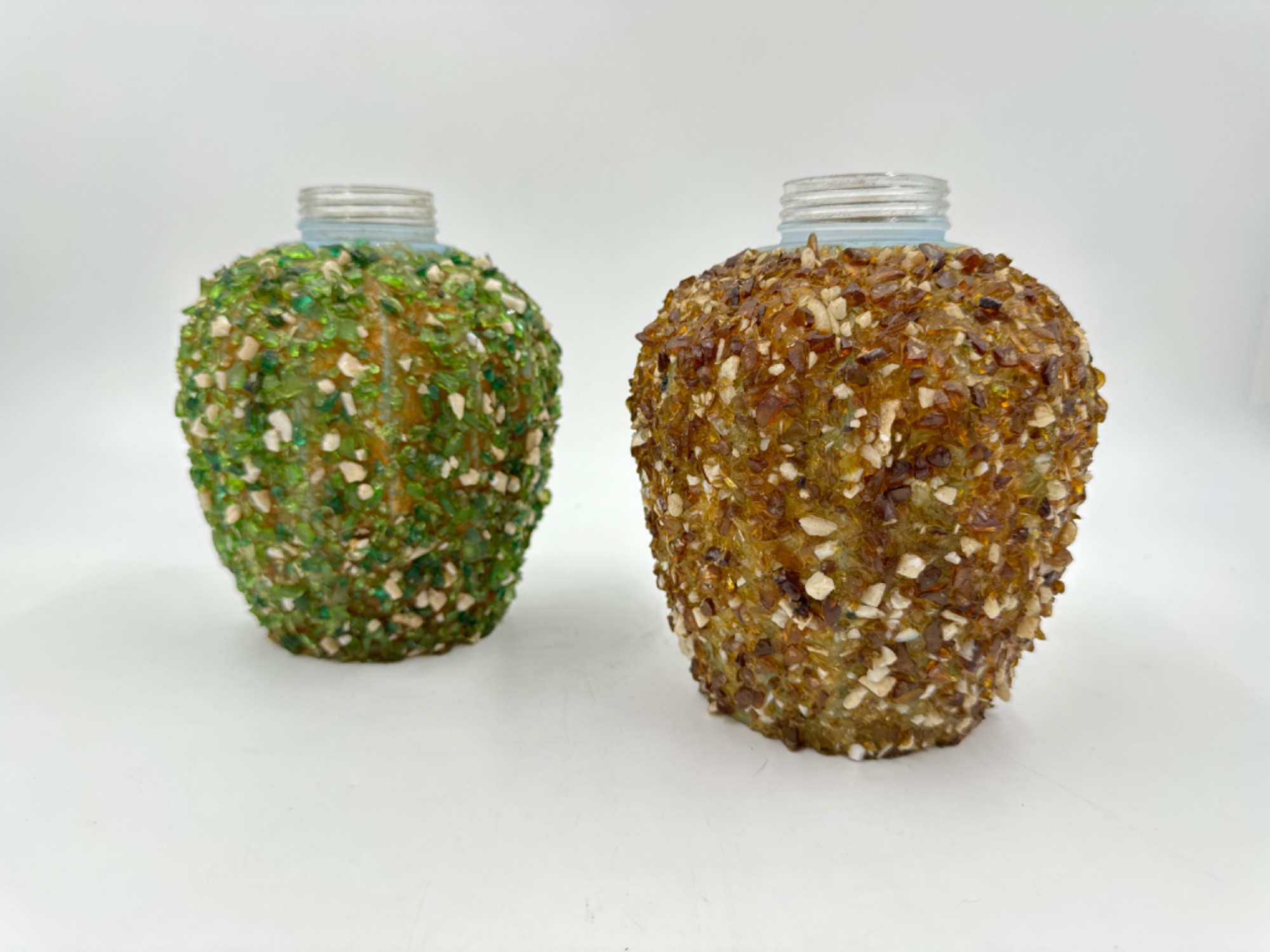 Retro Green & Brown Crushed Glass Lampshades 6.75”T 1 7/8” opening