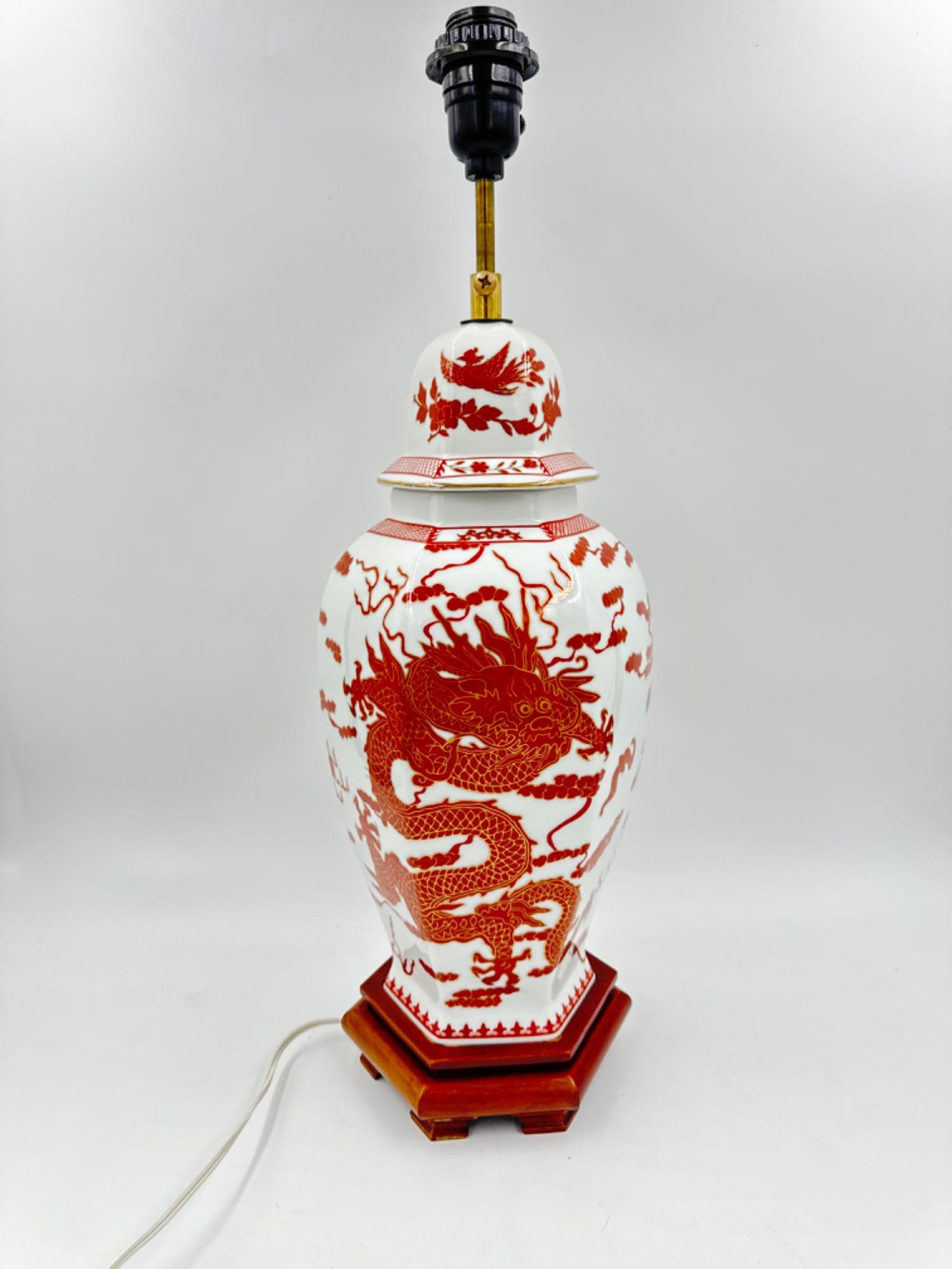 Lot # 162 - Red Dragonware Porcelain Ginger Jar Table Lamp