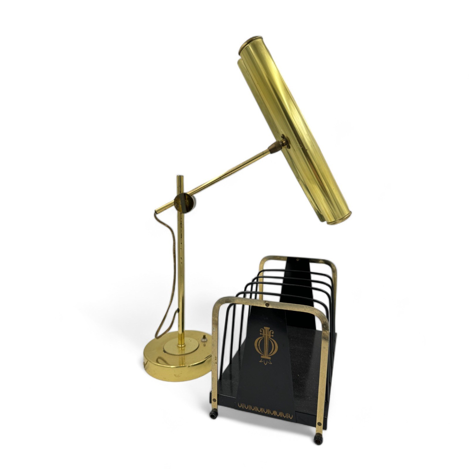 Lot # 173 - MCM Boom Arm Cantilever Desk Lamp & File/Vinyl Record Holder