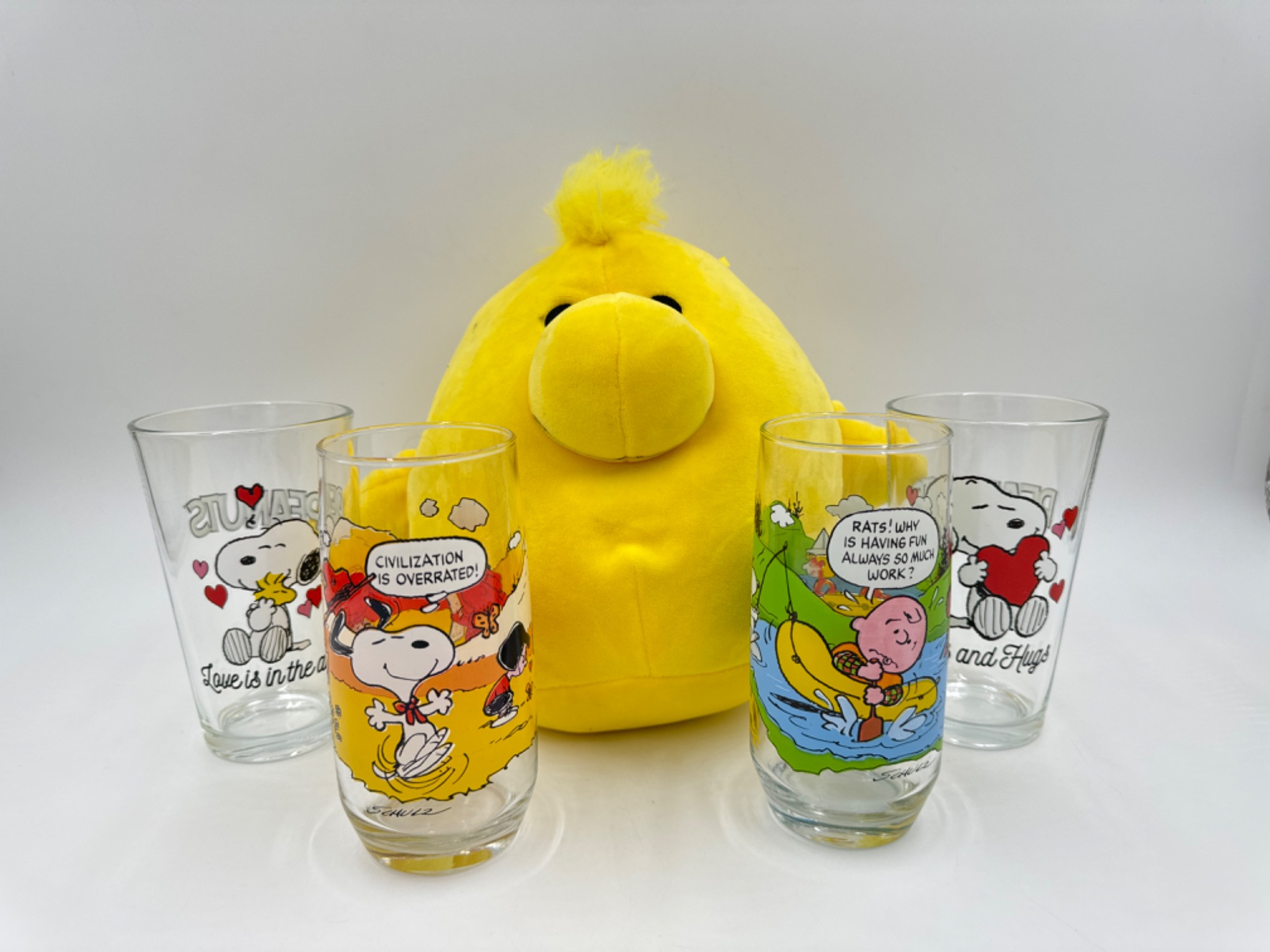 Lot # 191 - Snoopy & Woodstock Glasses + Squishmallows Woodstock