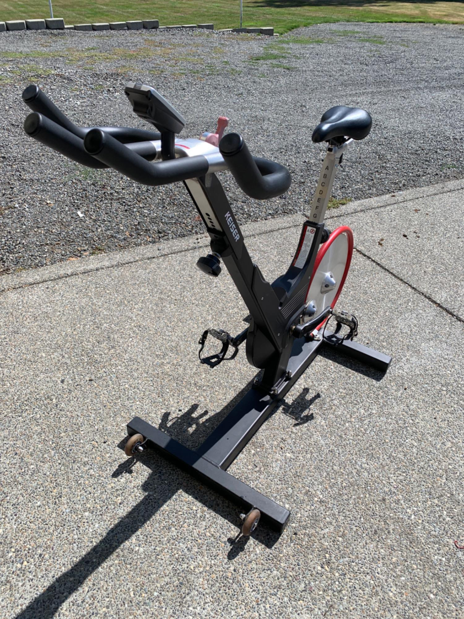 Kaiser M3 spin bike. Works great. Rolls for transport. Clean and no obvious wear or damage. Control pad turns on and functions. Adjustable seat and handlebars. Retails for over $2,600.00 Awkward size, bring help to load.