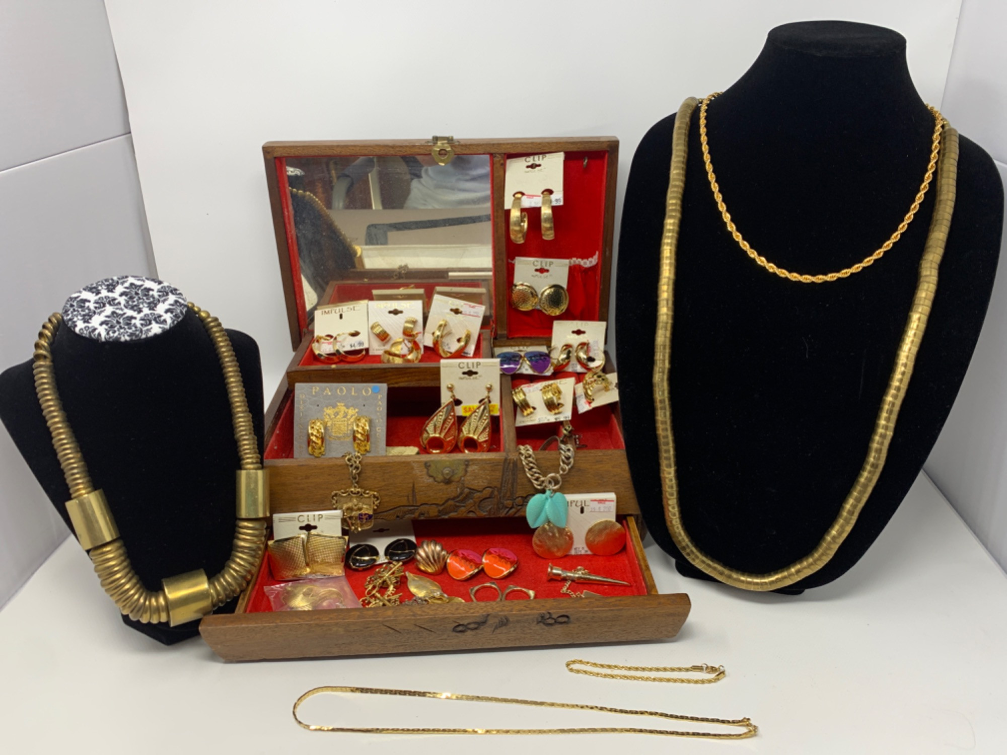 Lot # 163 - Gold Fashion Jewelry with Jewelry Box